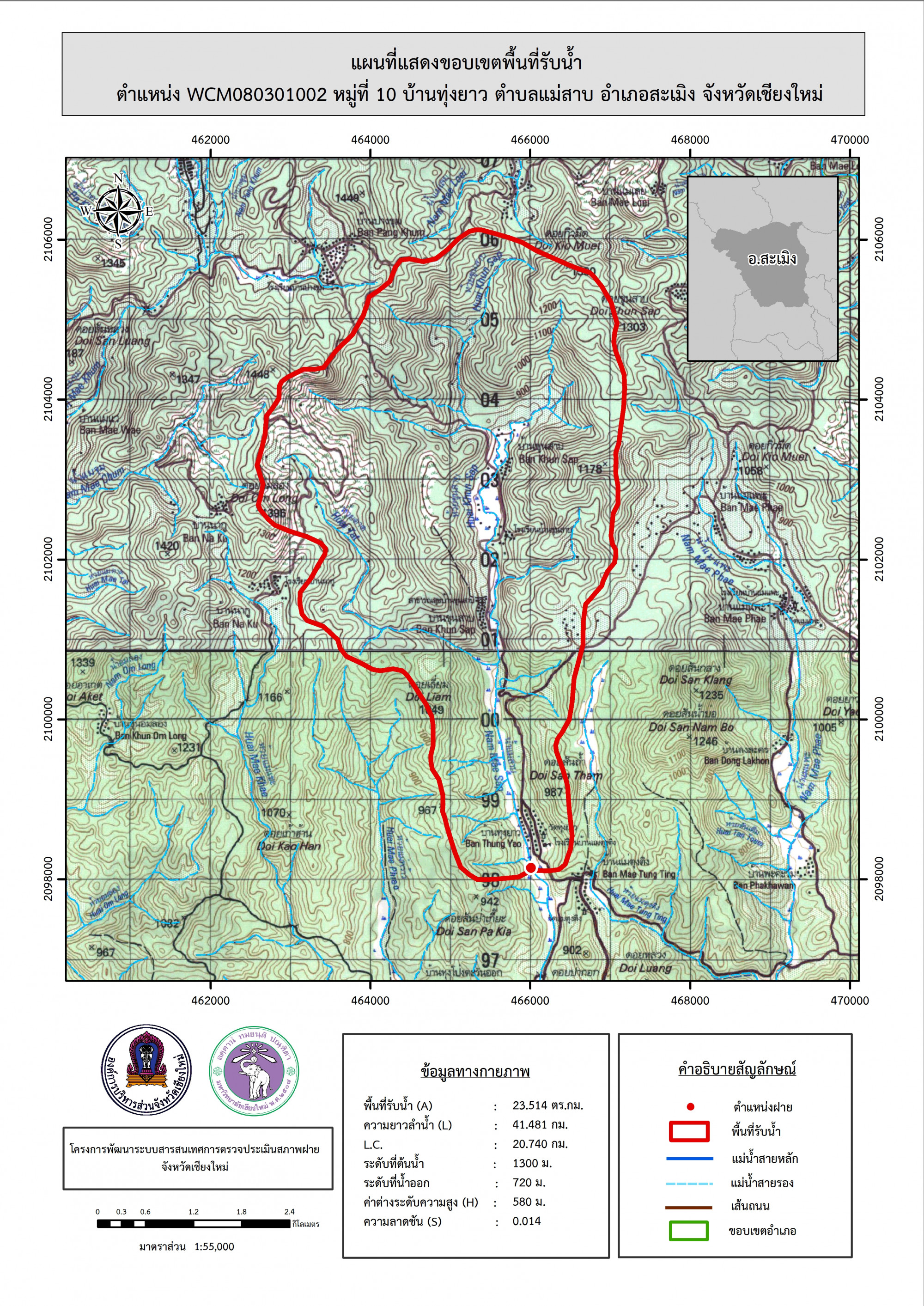 รูปภาพแผนที่แสดงขอบเขตพื้นที่รับน้ำ