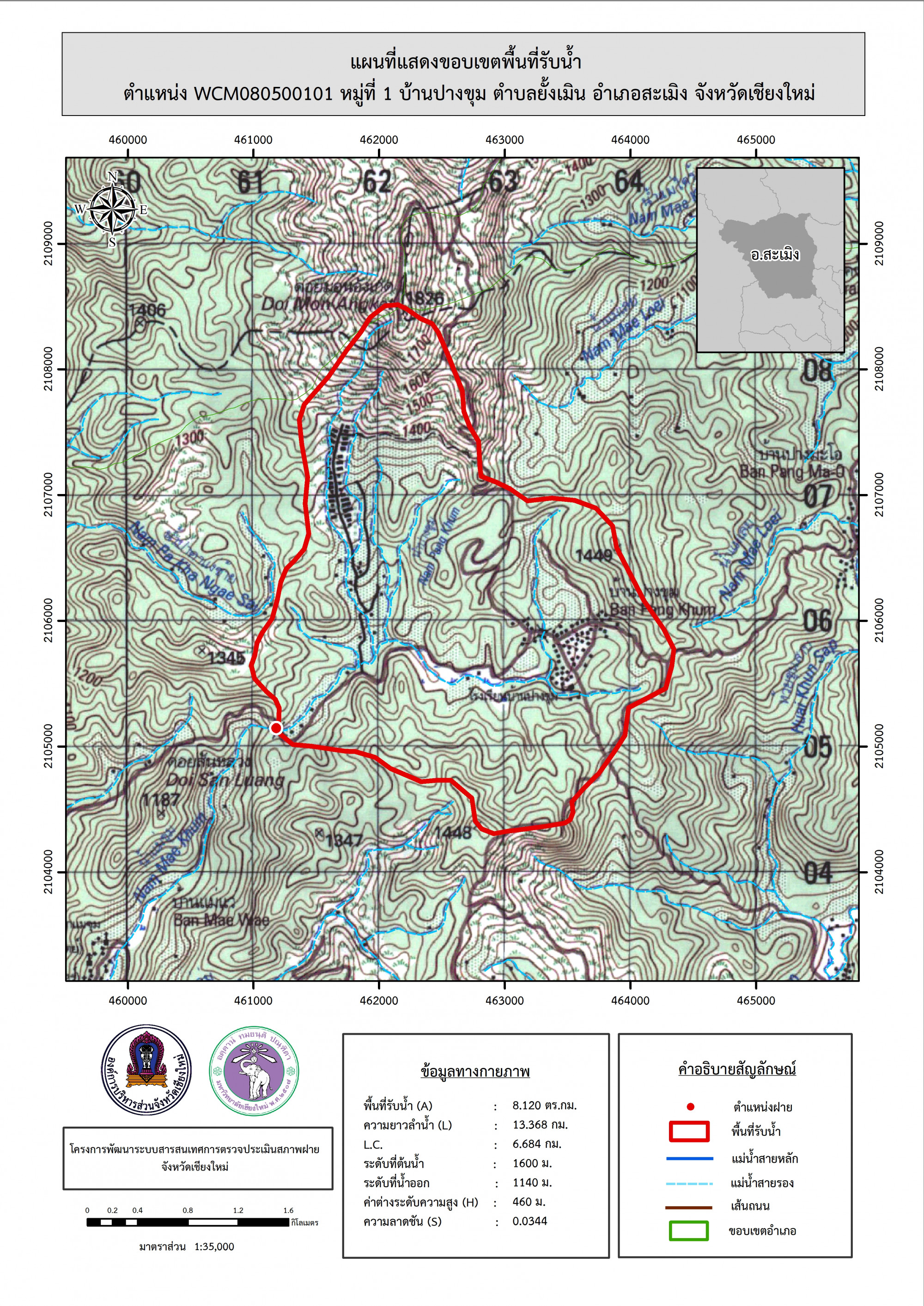 รูปภาพแผนที่แสดงขอบเขตพื้นที่รับน้ำ