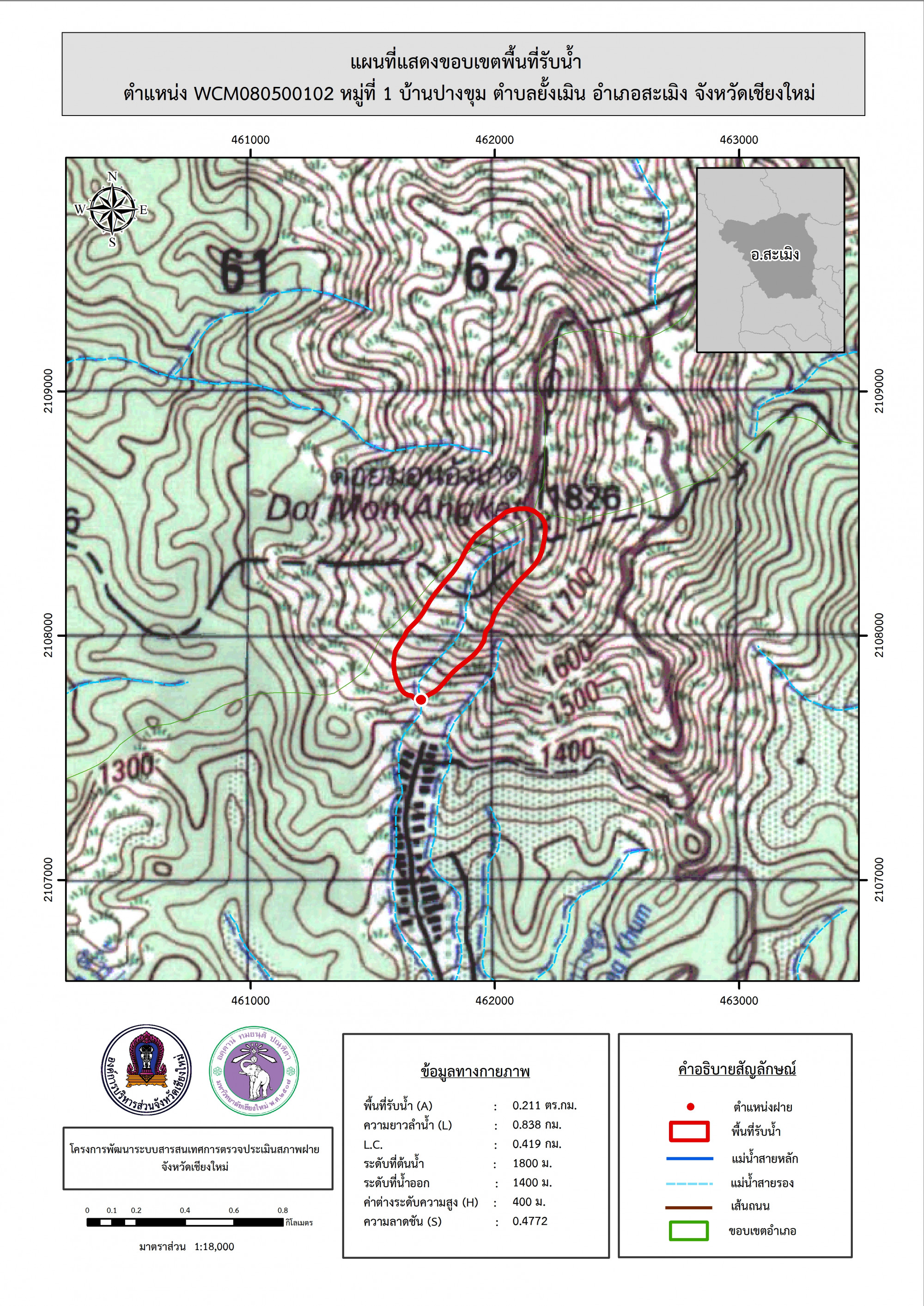 รูปภาพแผนที่แสดงขอบเขตพื้นที่รับน้ำ