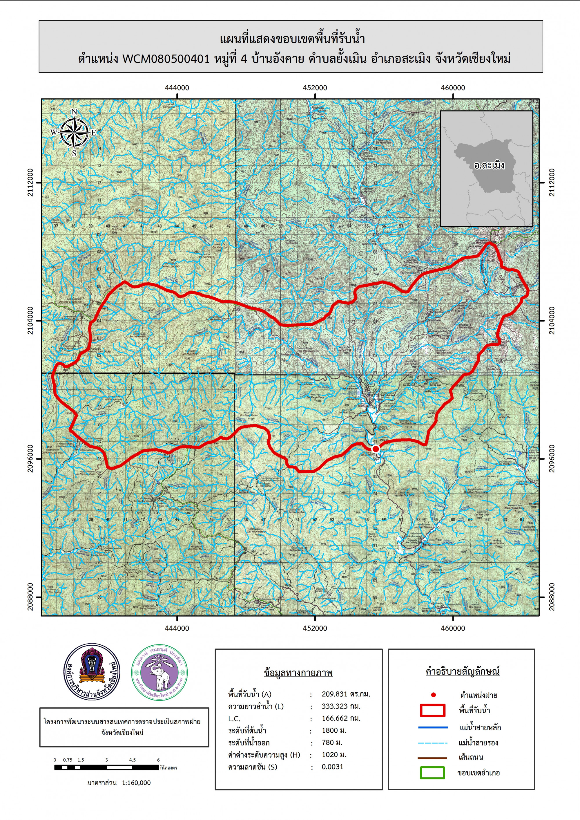 รูปภาพแผนที่แสดงขอบเขตพื้นที่รับน้ำ