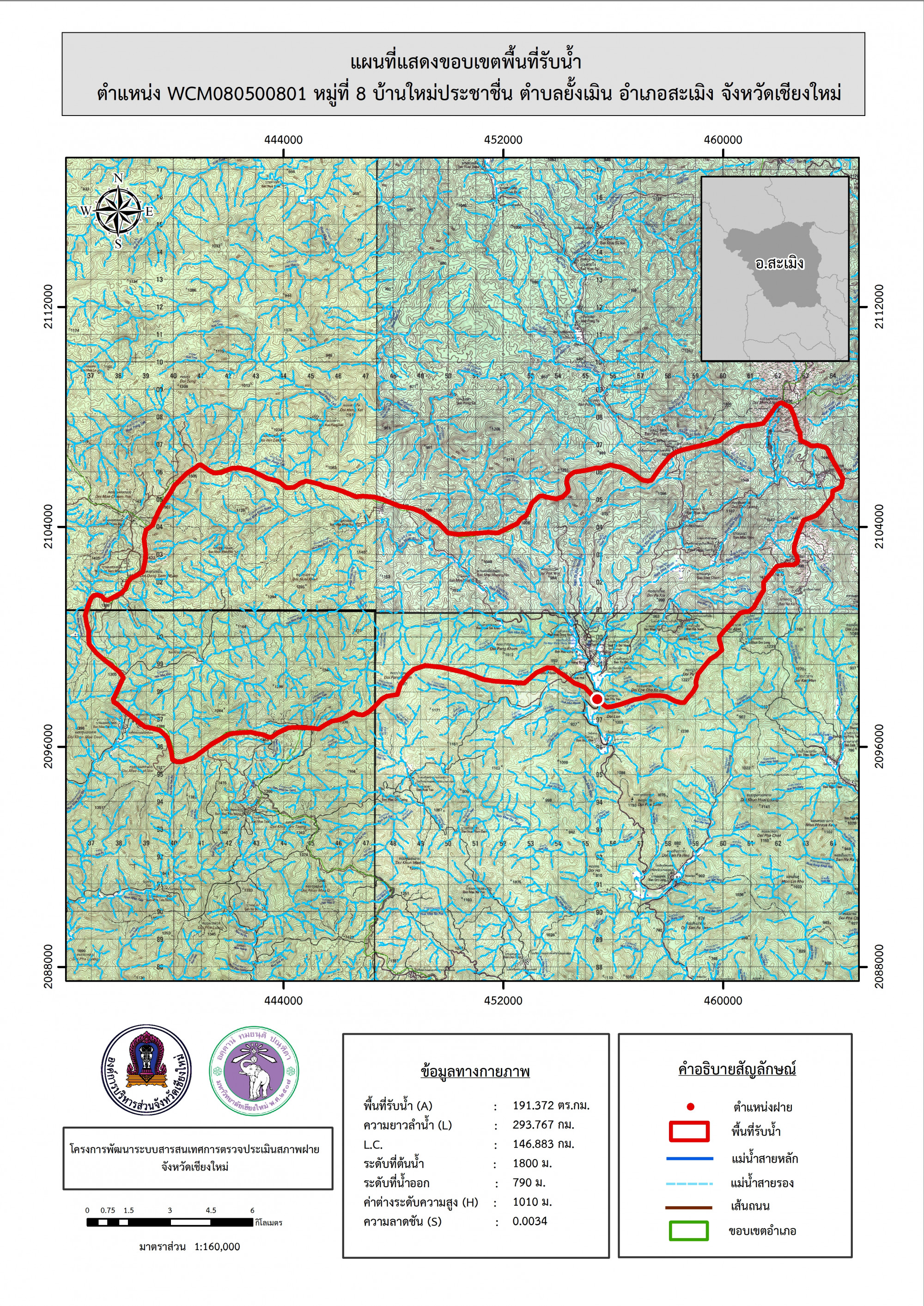 รูปภาพแผนที่แสดงขอบเขตพื้นที่รับน้ำ
