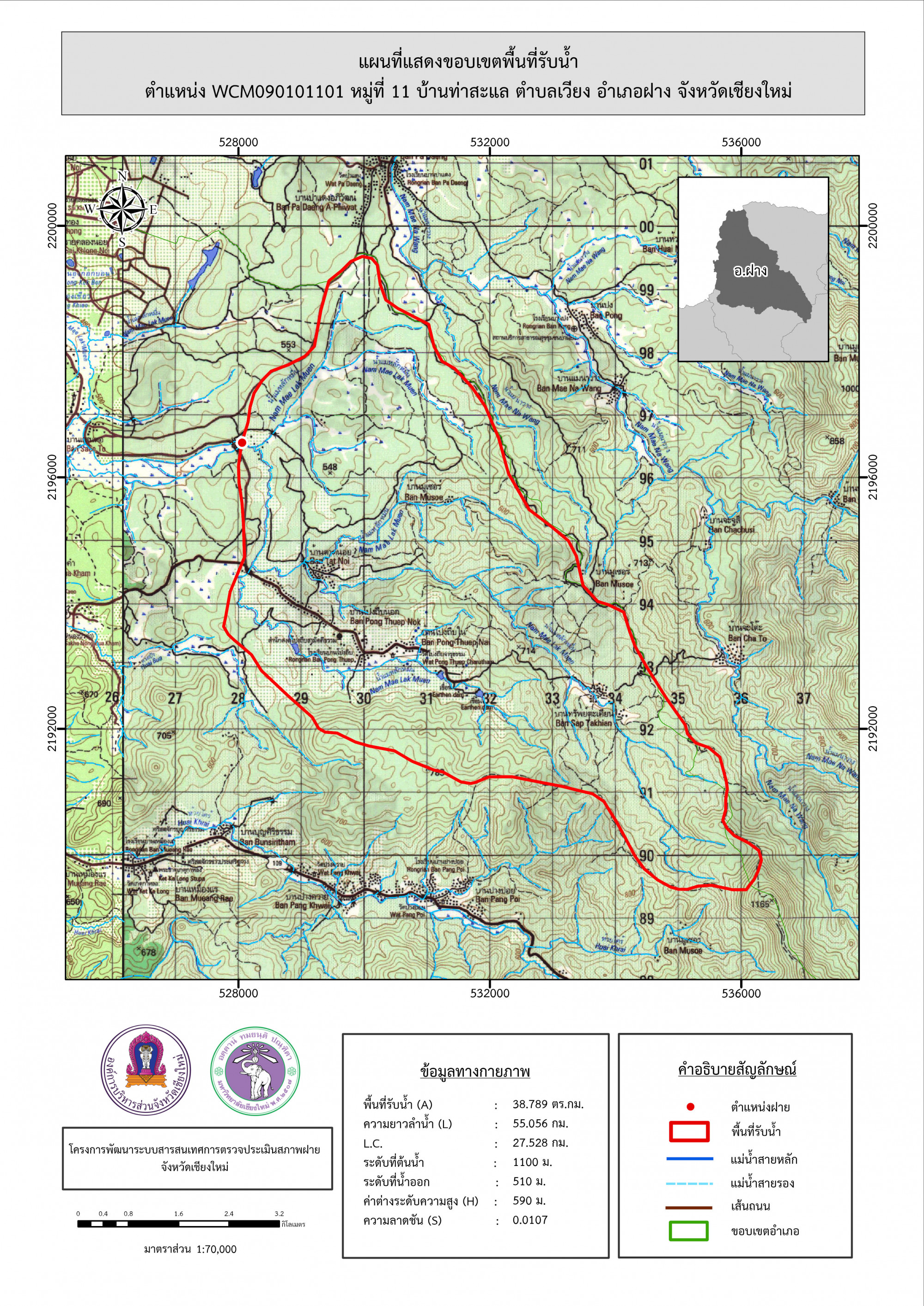 รูปภาพแผนที่แสดงขอบเขตพื้นที่รับน้ำ