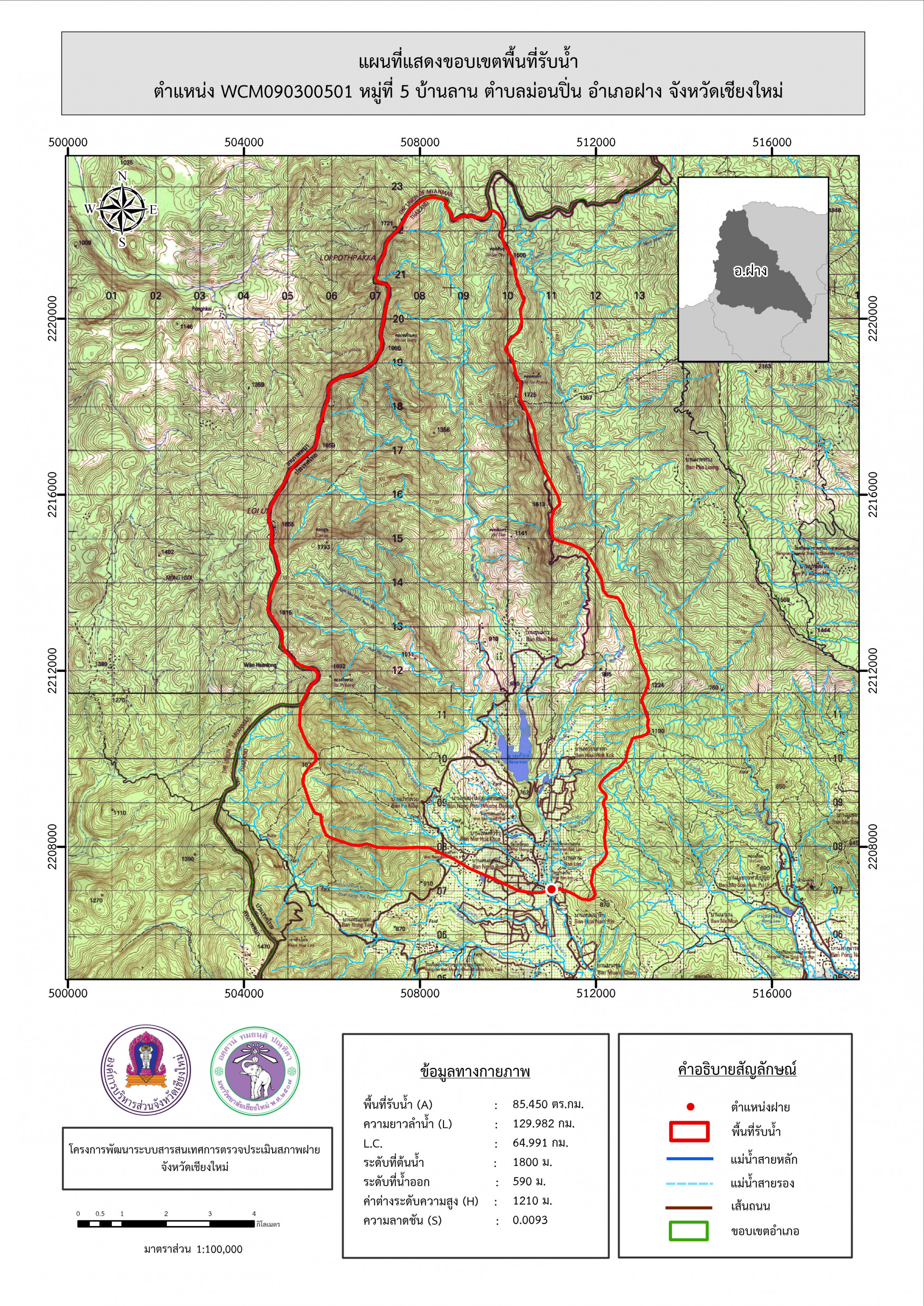 รูปภาพแผนที่แสดงขอบเขตพื้นที่รับน้ำ