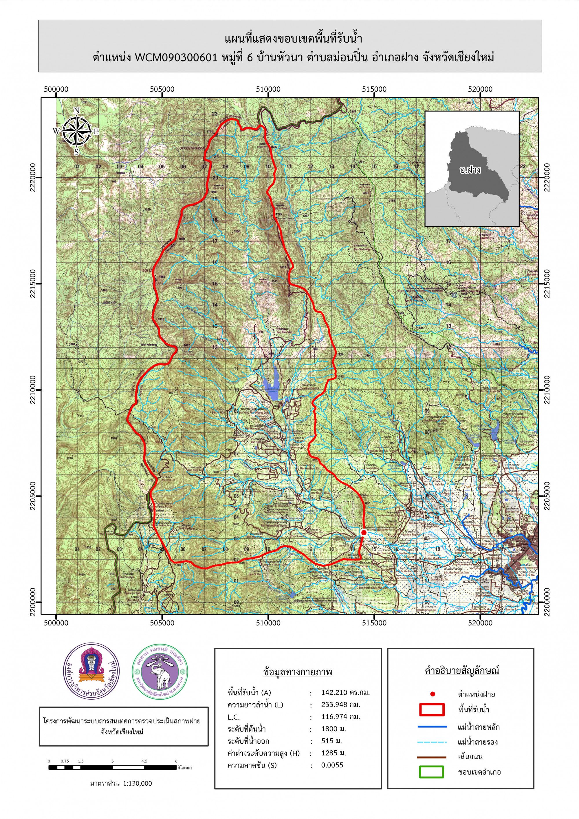 รูปภาพแผนที่แสดงขอบเขตพื้นที่รับน้ำ
