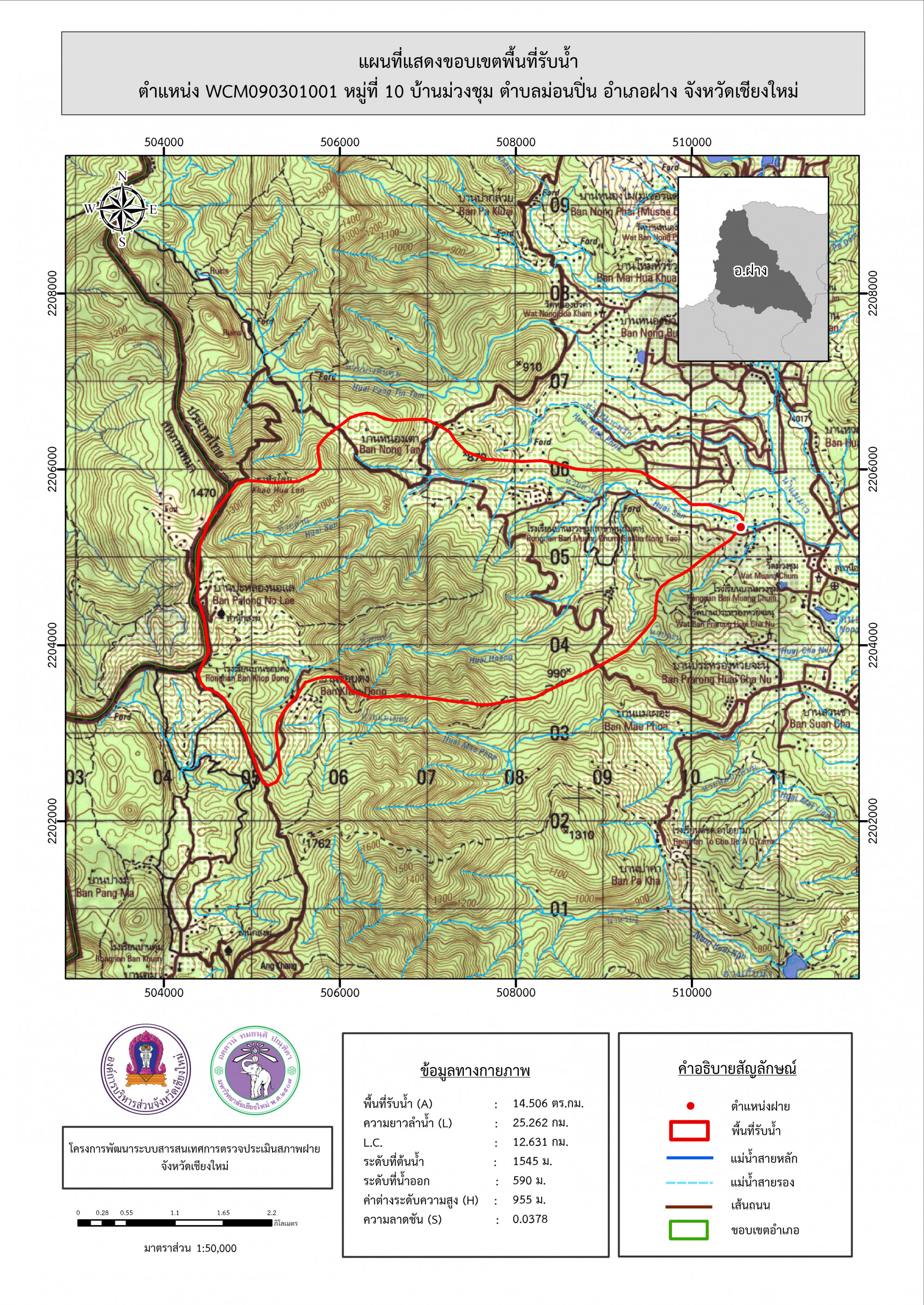 รูปภาพแผนที่แสดงขอบเขตพื้นที่รับน้ำ