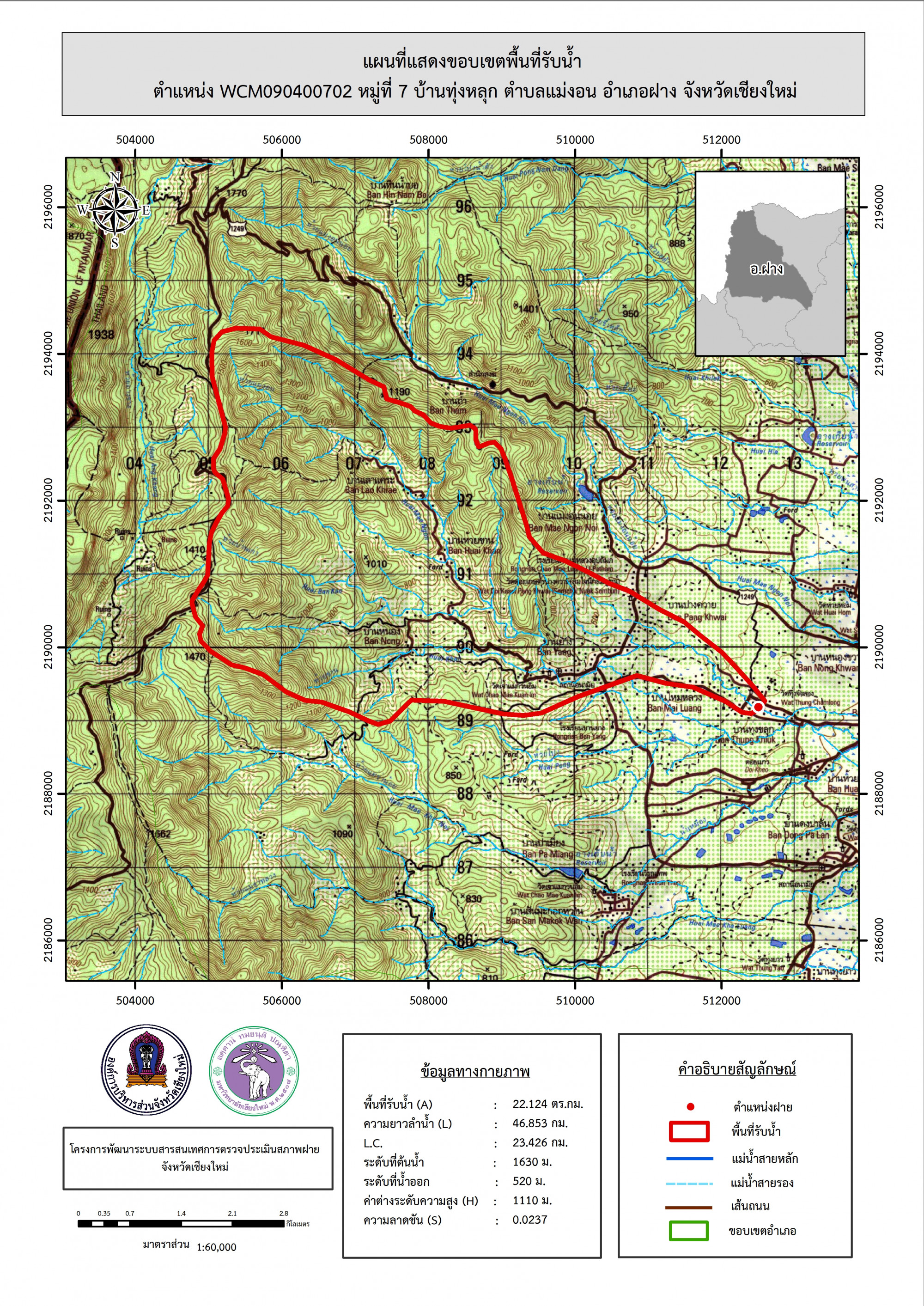 รูปภาพแผนที่แสดงขอบเขตพื้นที่รับน้ำ