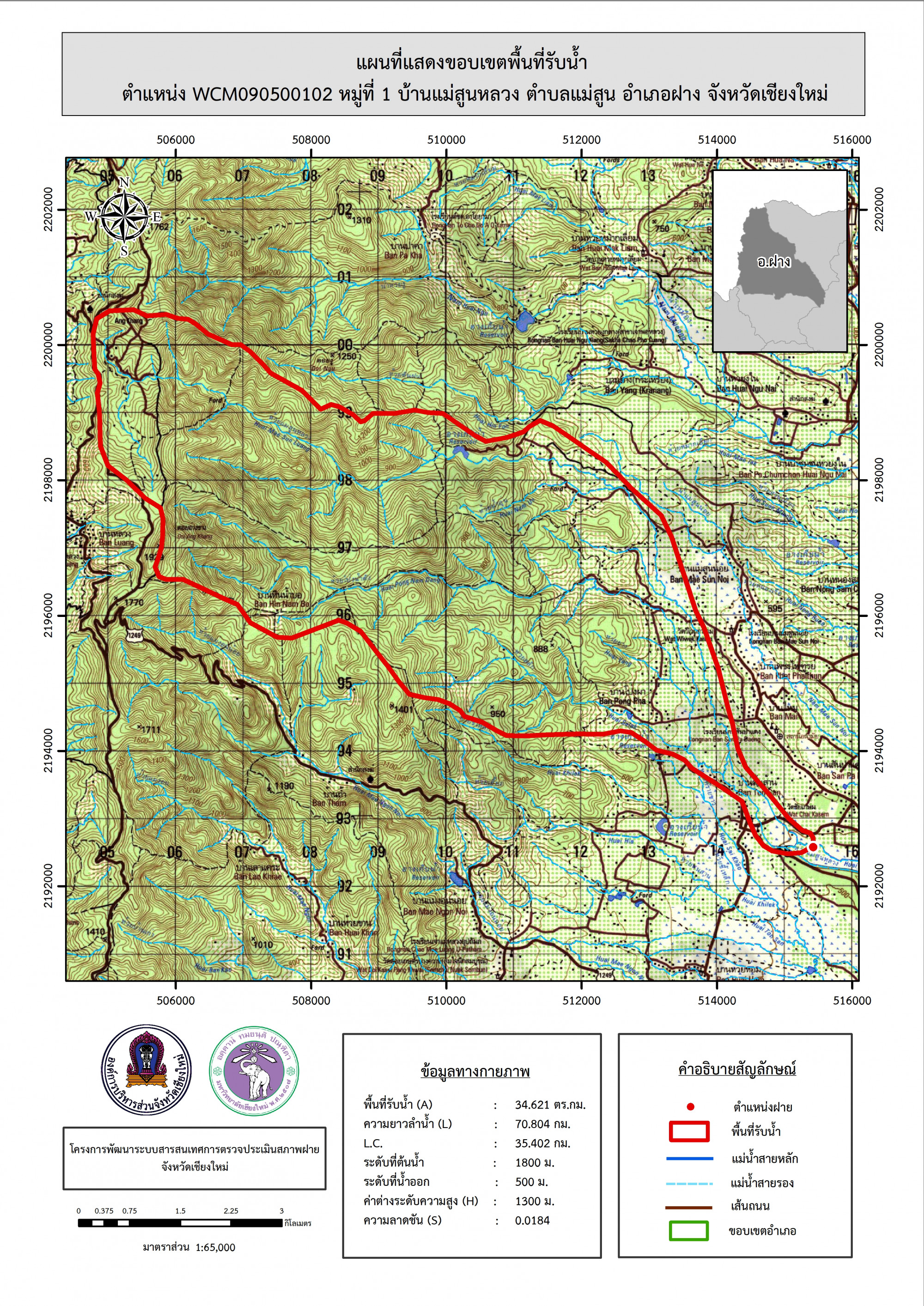 รูปภาพแผนที่แสดงขอบเขตพื้นที่รับน้ำ
