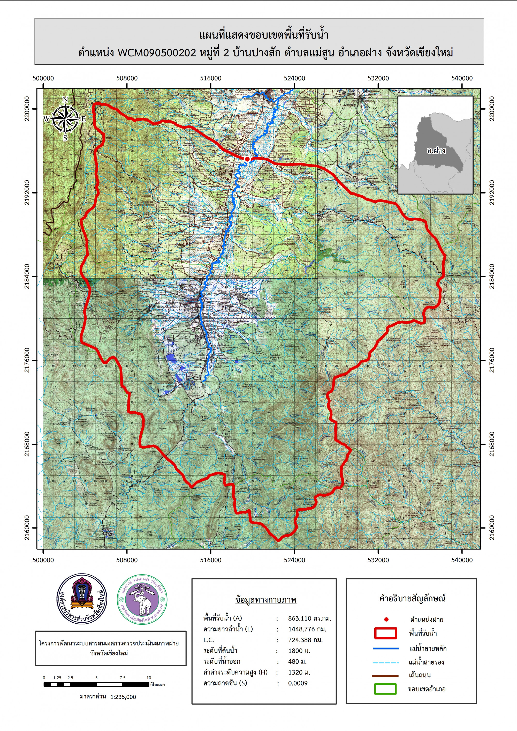รูปภาพแผนที่แสดงขอบเขตพื้นที่รับน้ำ