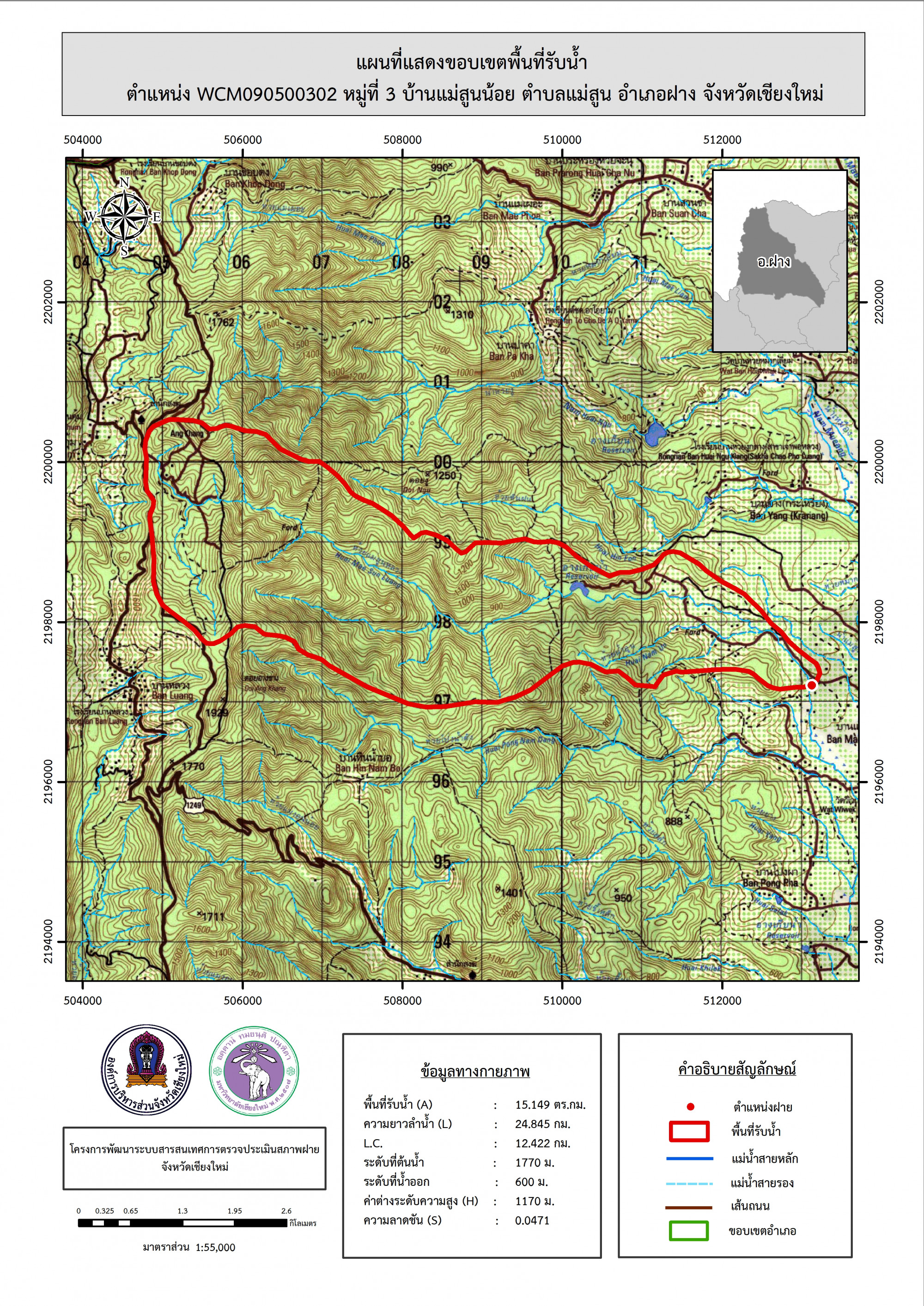 รูปภาพแผนที่แสดงขอบเขตพื้นที่รับน้ำ