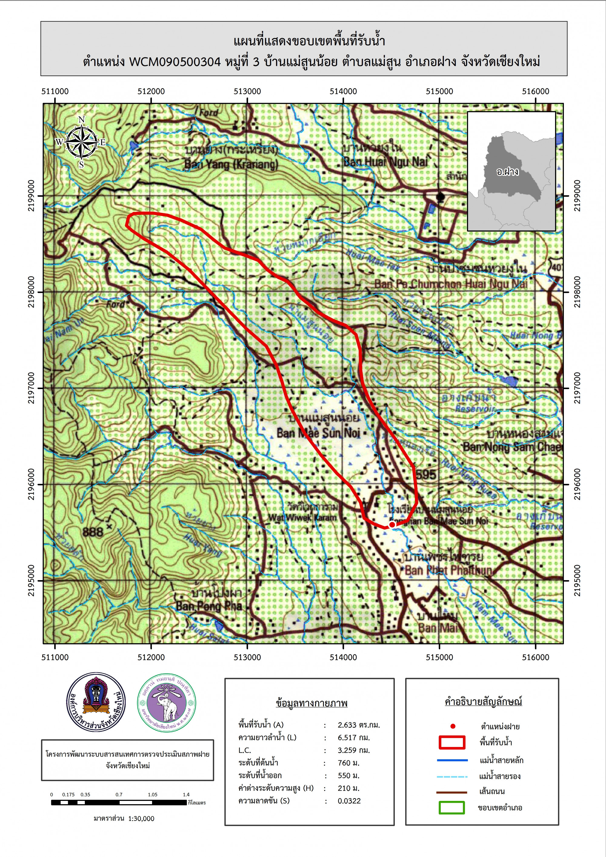รูปภาพแผนที่แสดงขอบเขตพื้นที่รับน้ำ