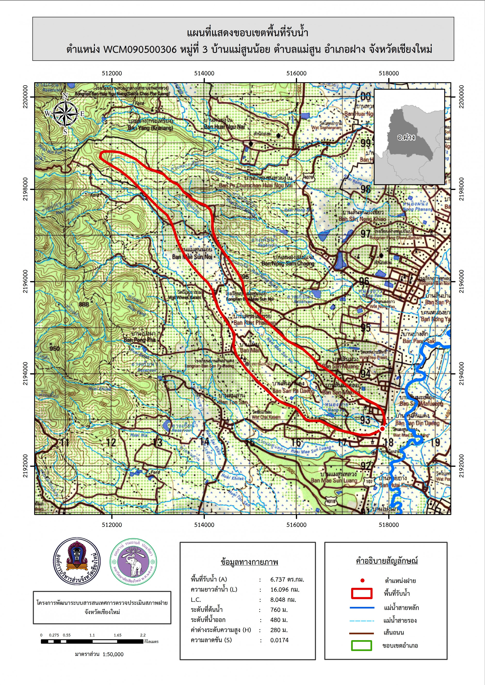 รูปภาพแผนที่แสดงขอบเขตพื้นที่รับน้ำ