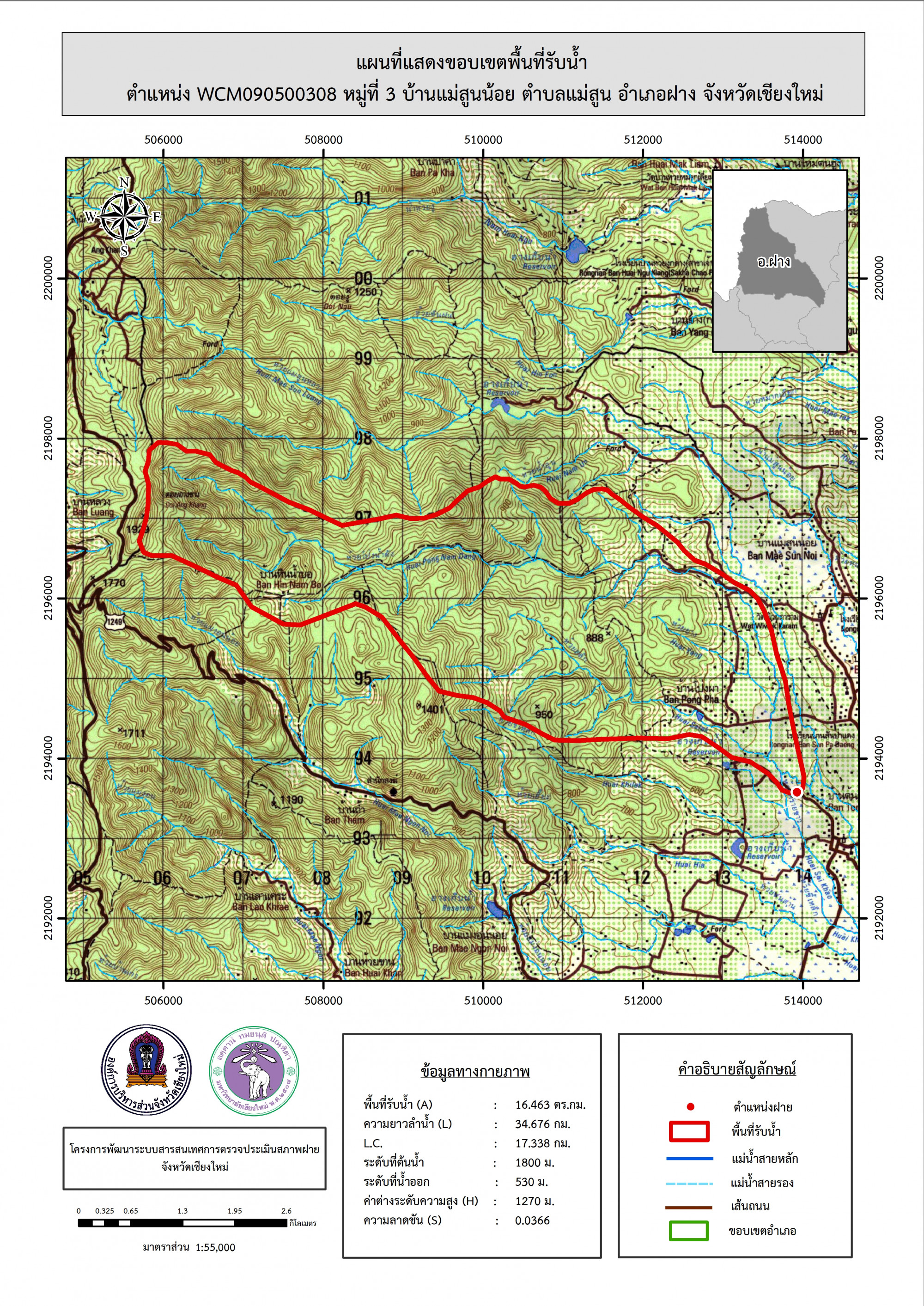 รูปภาพแผนที่แสดงขอบเขตพื้นที่รับน้ำ