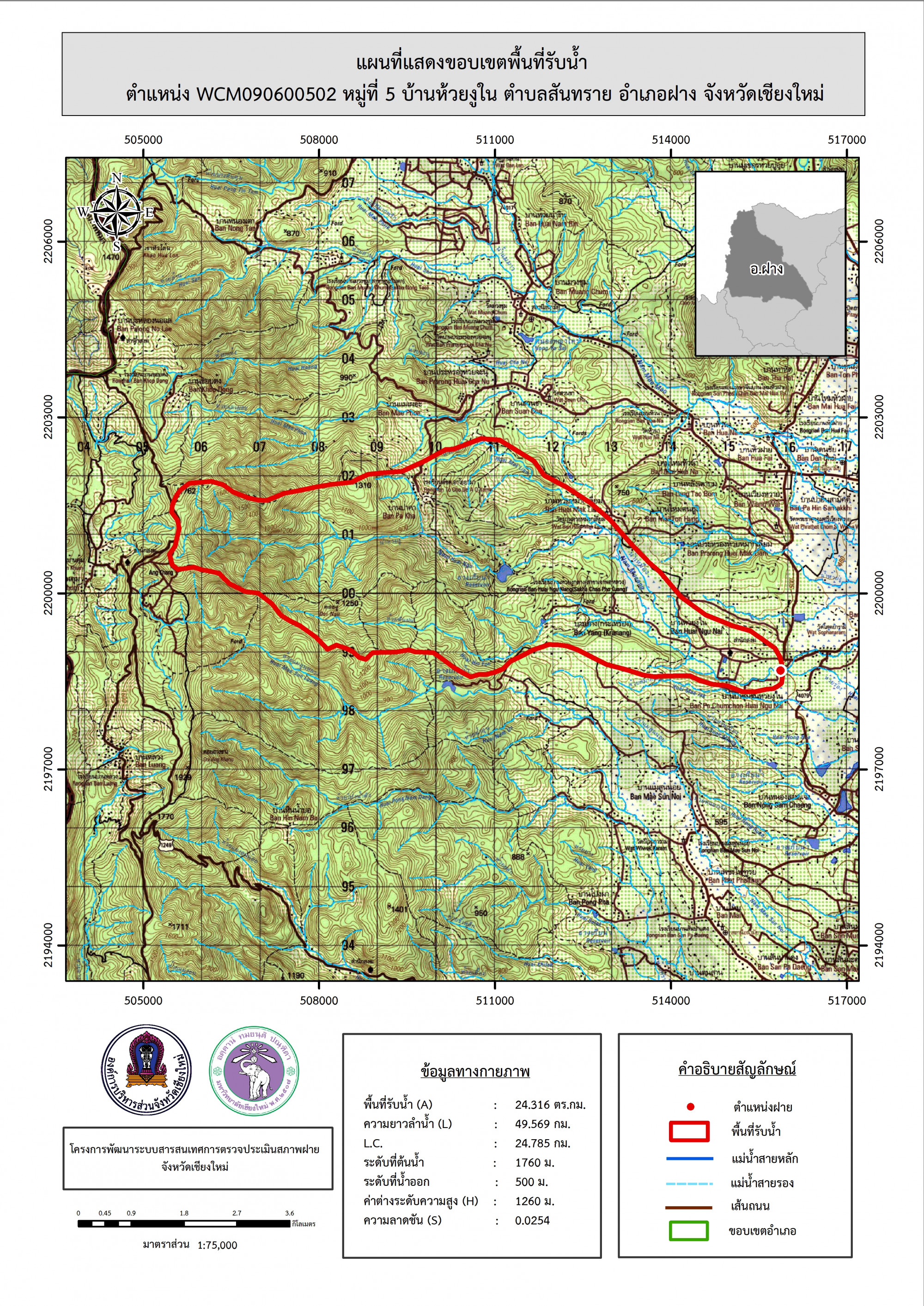 รูปภาพแผนที่แสดงขอบเขตพื้นที่รับน้ำ