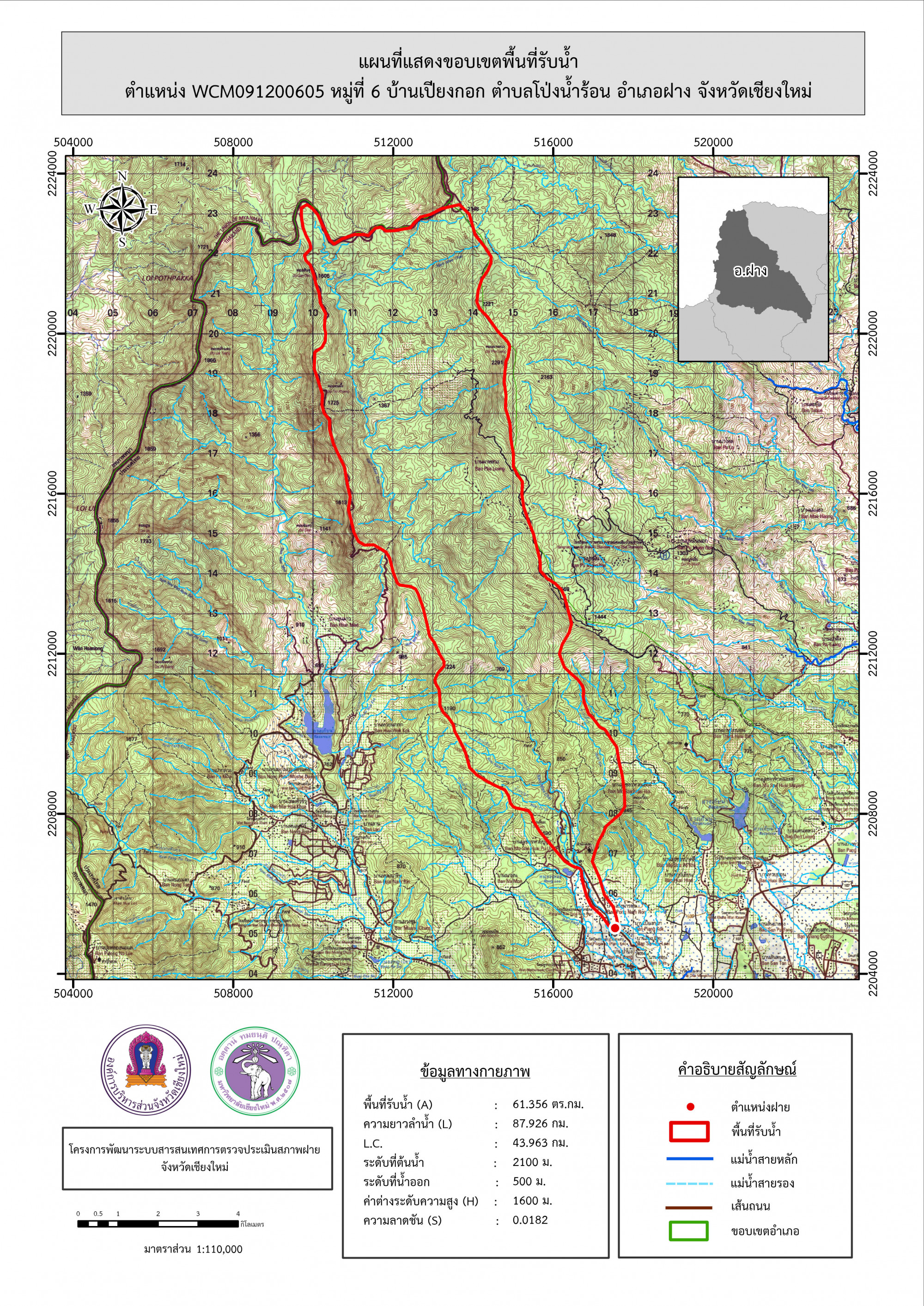 รูปภาพแผนที่แสดงขอบเขตพื้นที่รับน้ำ