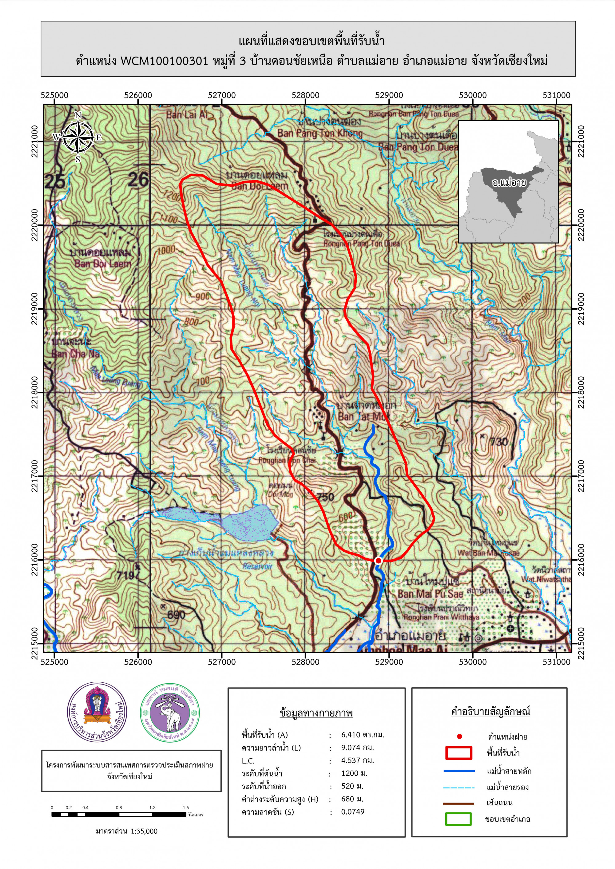 รูปภาพแผนที่แสดงขอบเขตพื้นที่รับน้ำ