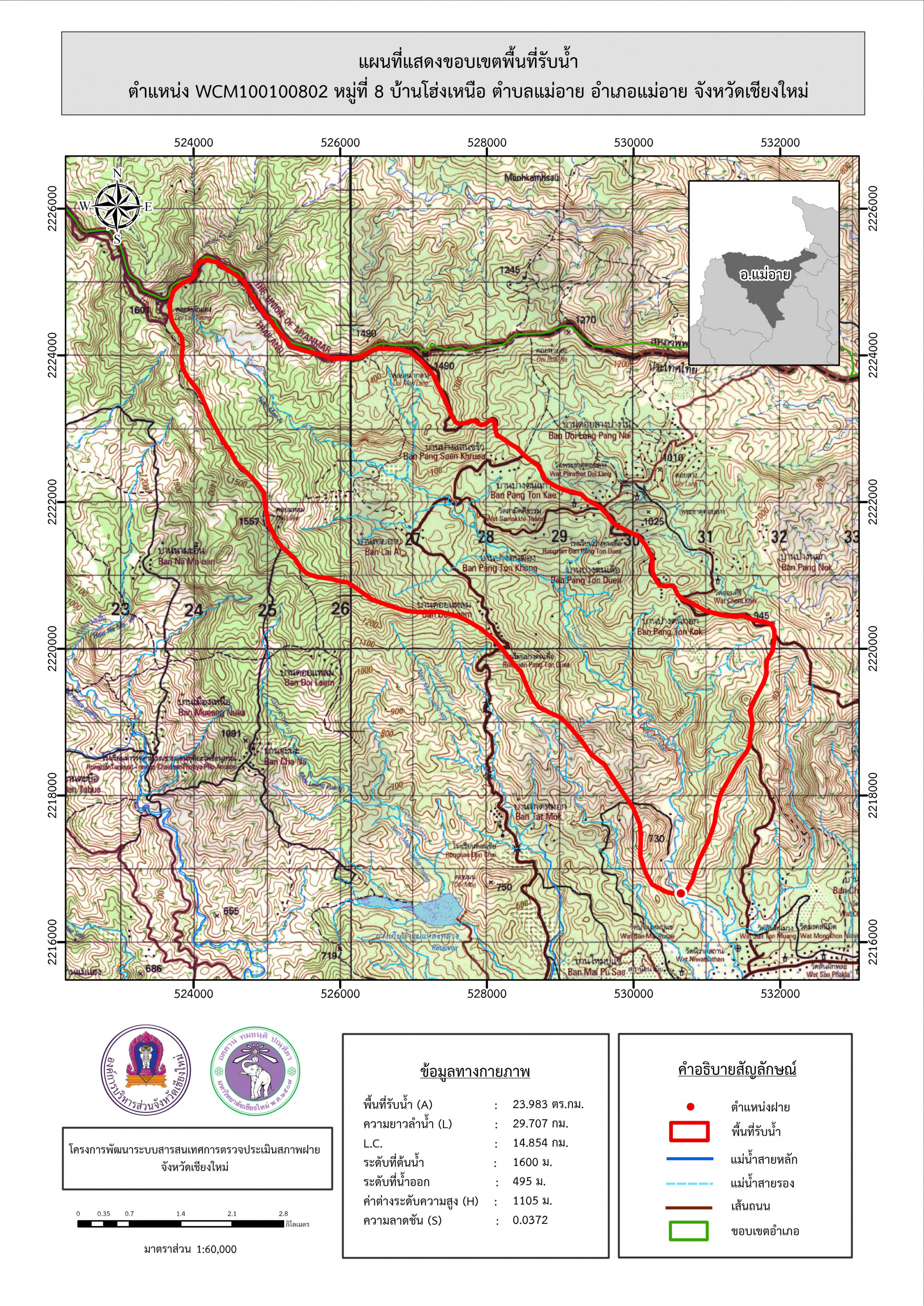 รูปภาพแผนที่แสดงขอบเขตพื้นที่รับน้ำ