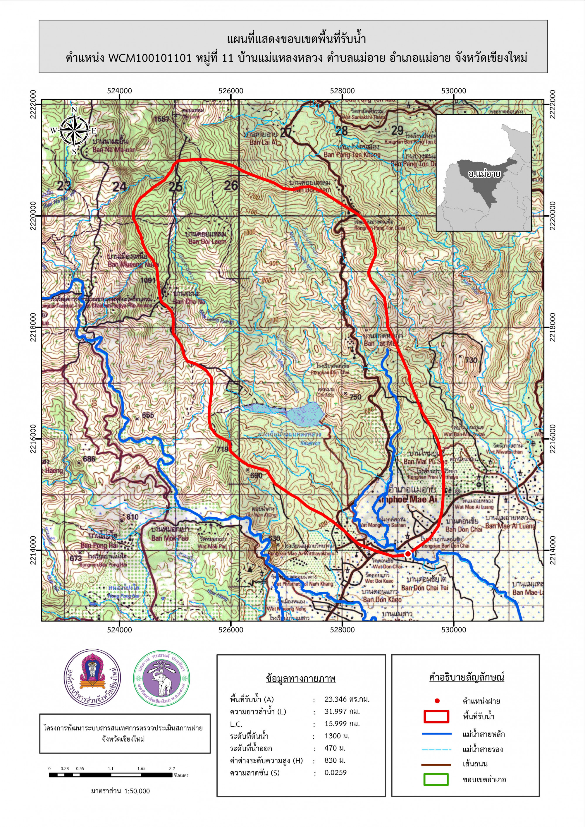 รูปภาพแผนที่แสดงขอบเขตพื้นที่รับน้ำ