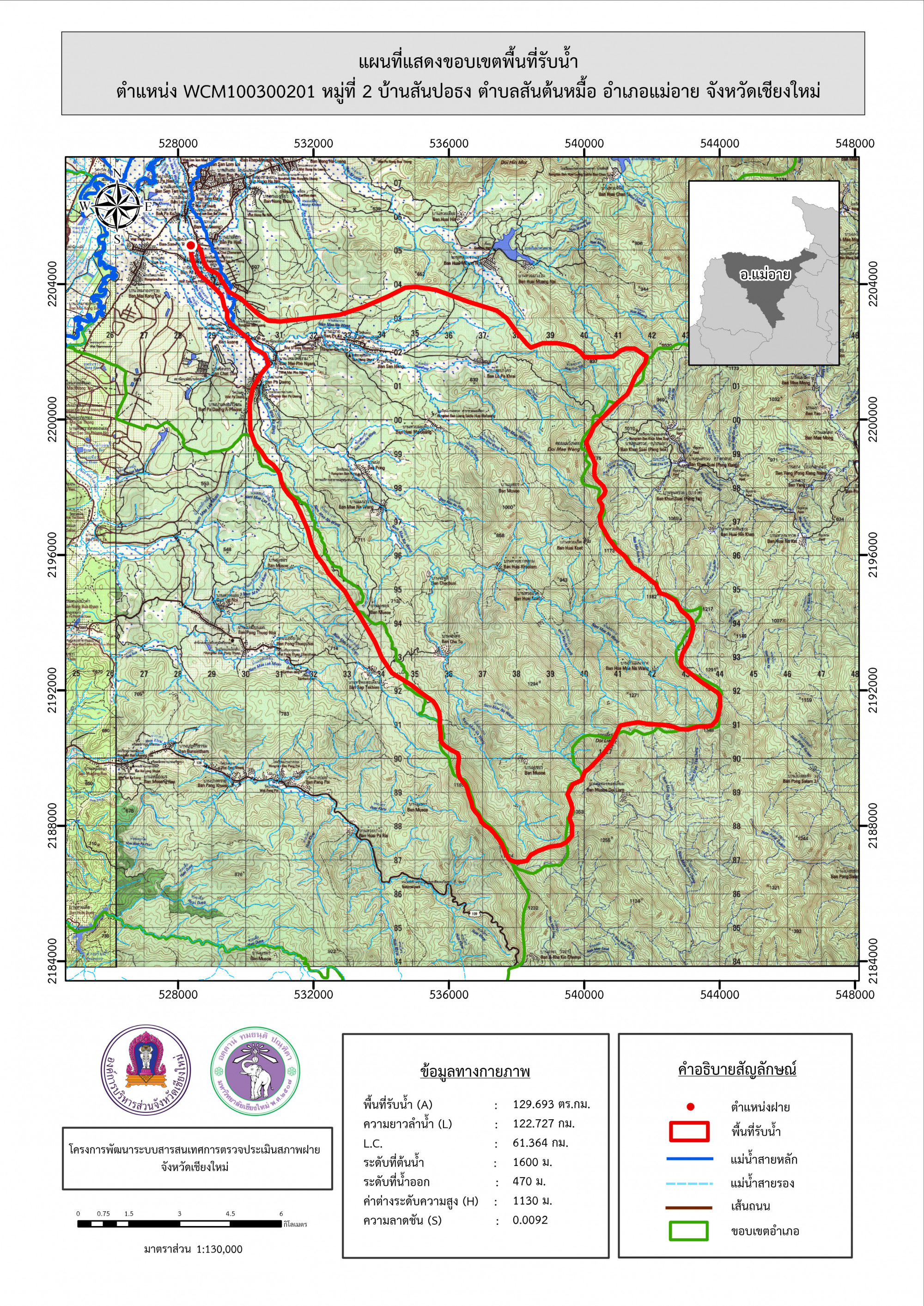 รูปภาพแผนที่แสดงขอบเขตพื้นที่รับน้ำ