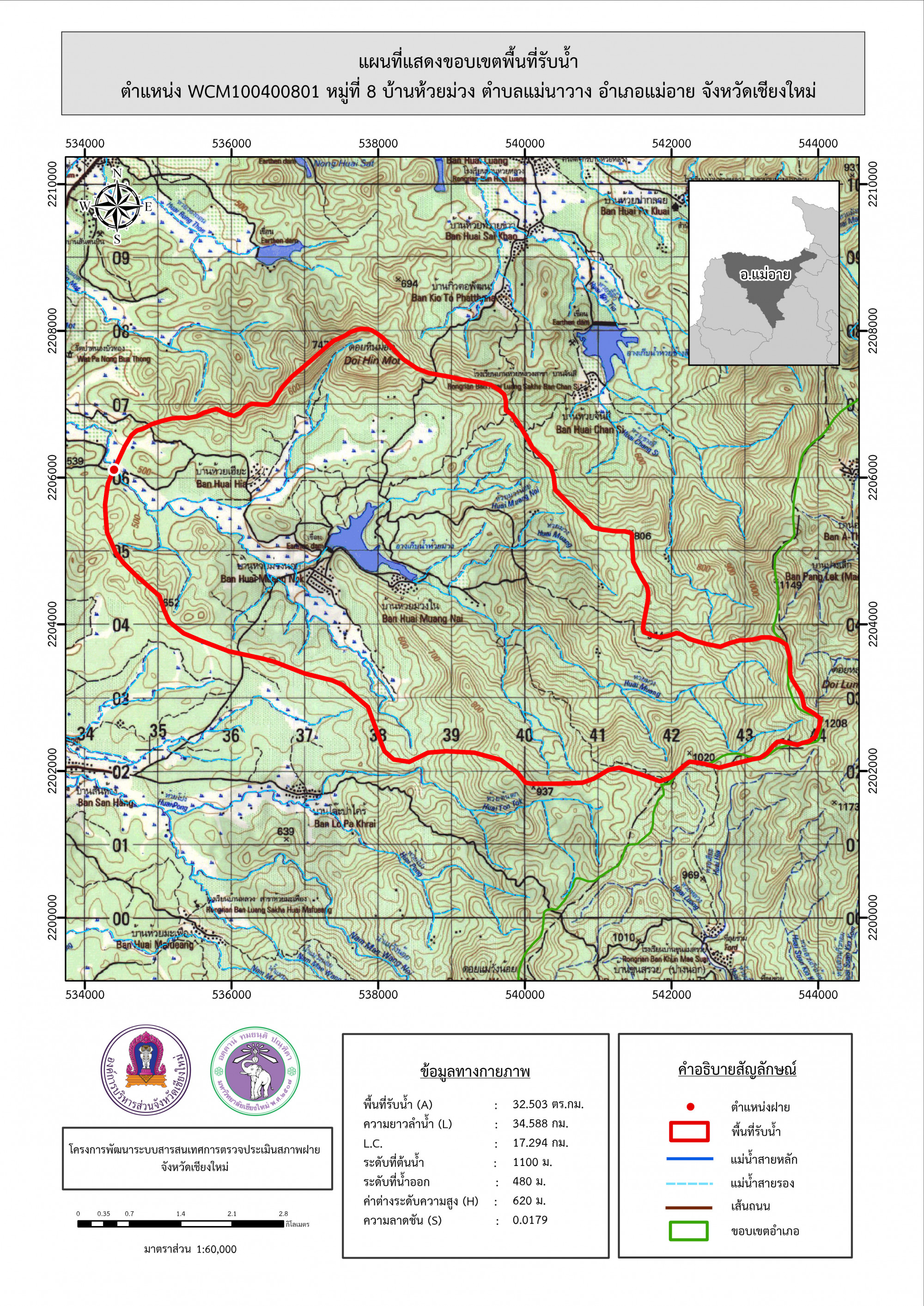 รูปภาพแผนที่แสดงขอบเขตพื้นที่รับน้ำ