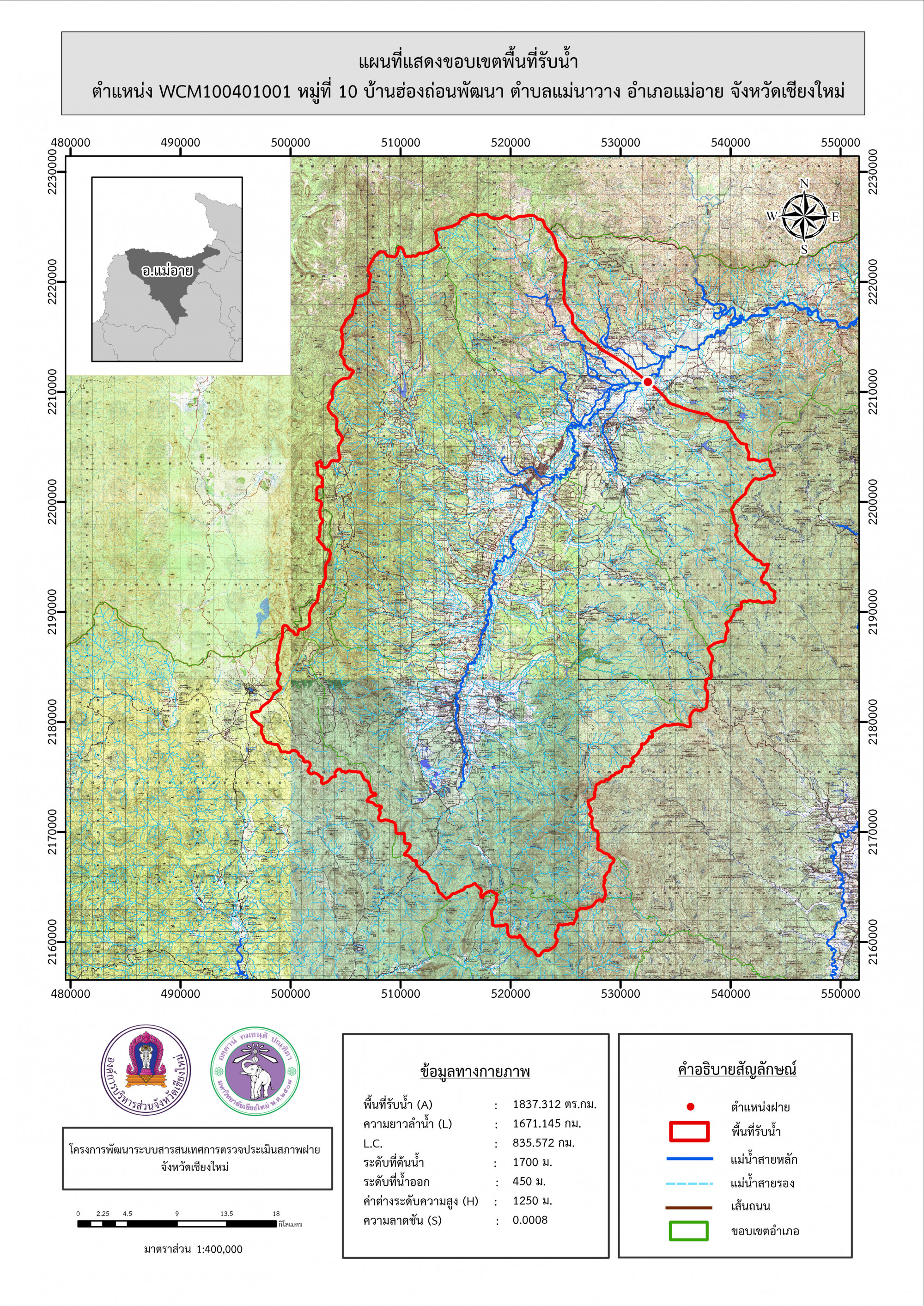 รูปภาพแผนที่แสดงขอบเขตพื้นที่รับน้ำ