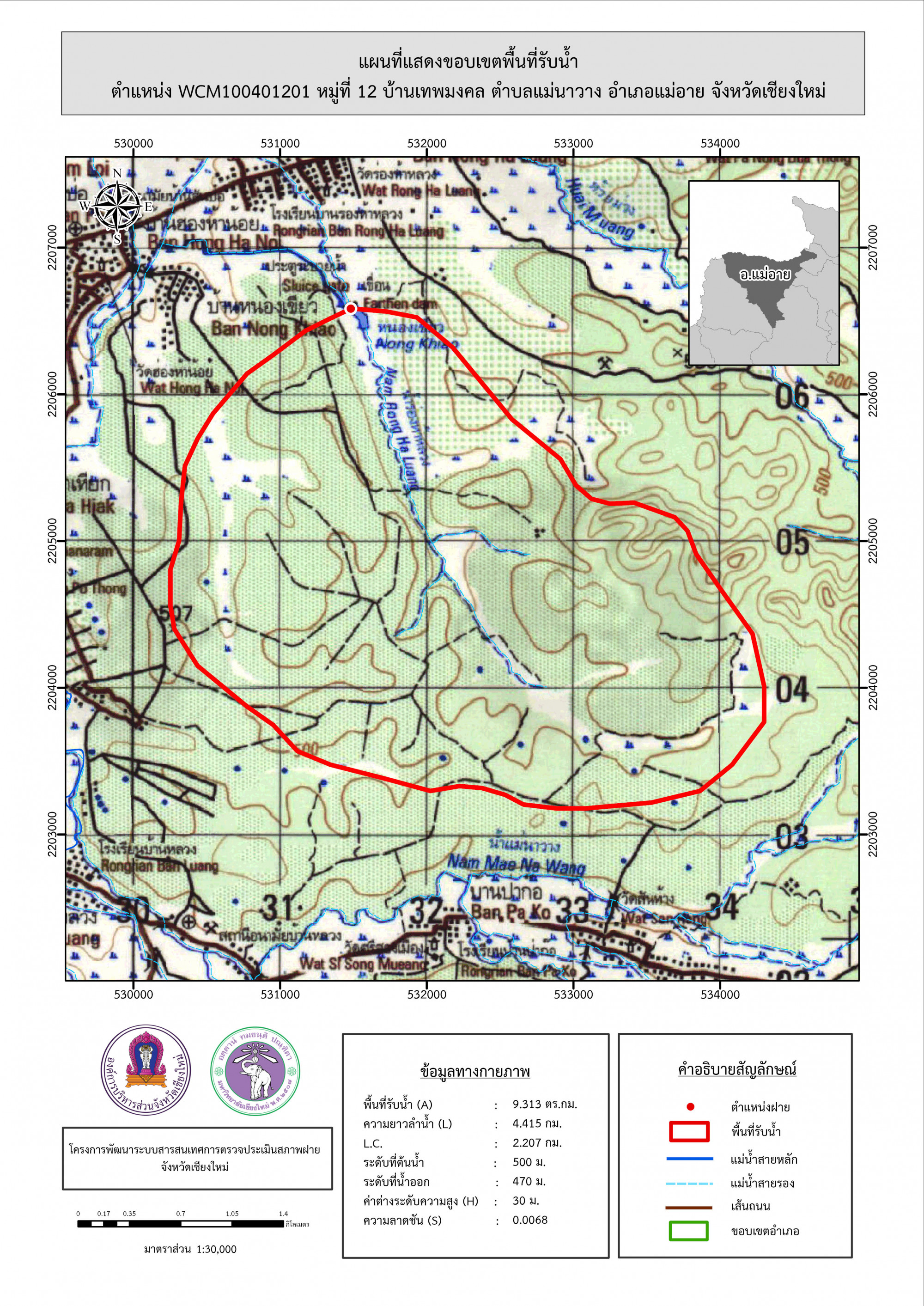 รูปภาพแผนที่แสดงขอบเขตพื้นที่รับน้ำ
