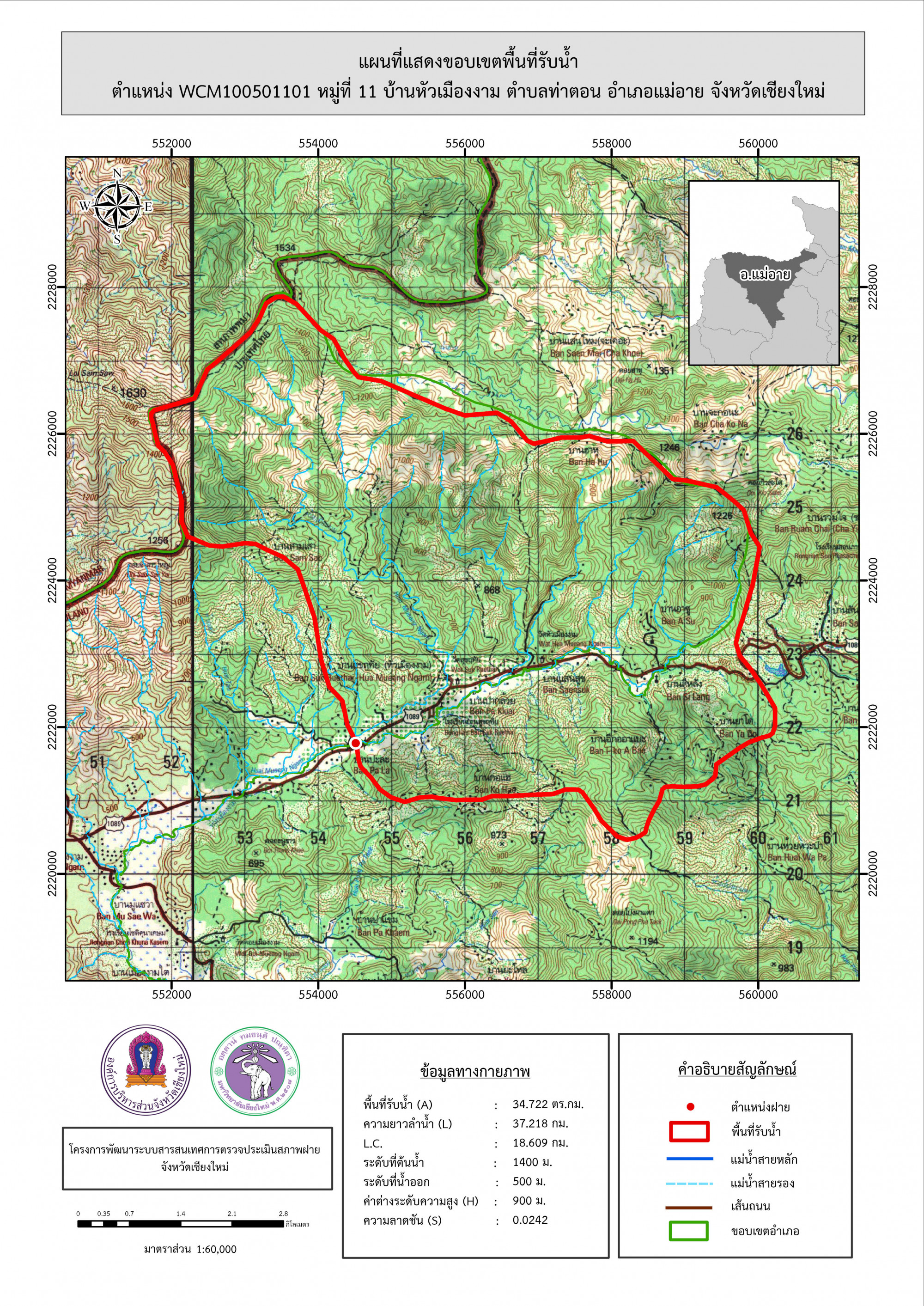 รูปภาพแผนที่แสดงขอบเขตพื้นที่รับน้ำ