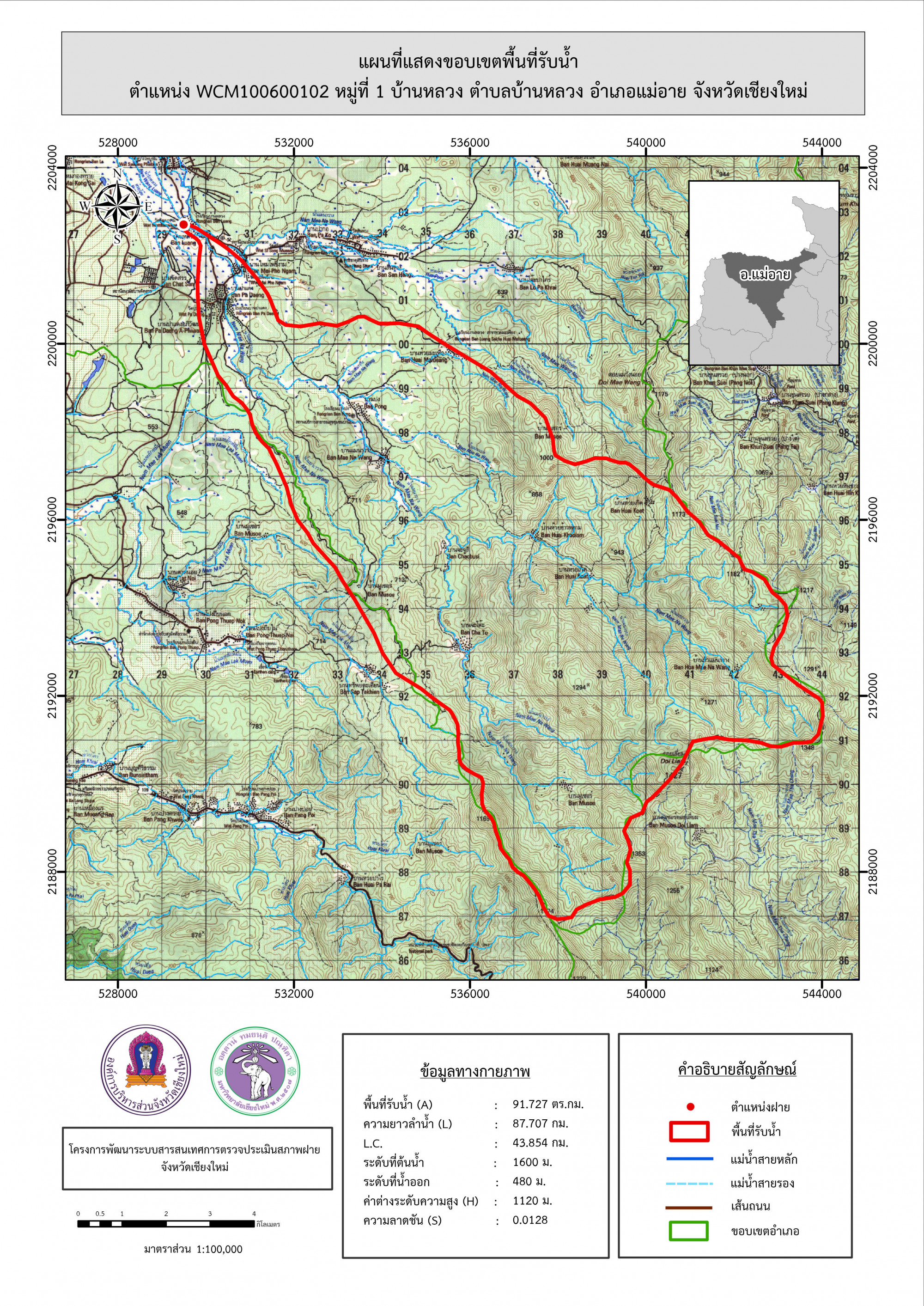 รูปภาพแผนที่แสดงขอบเขตพื้นที่รับน้ำ
