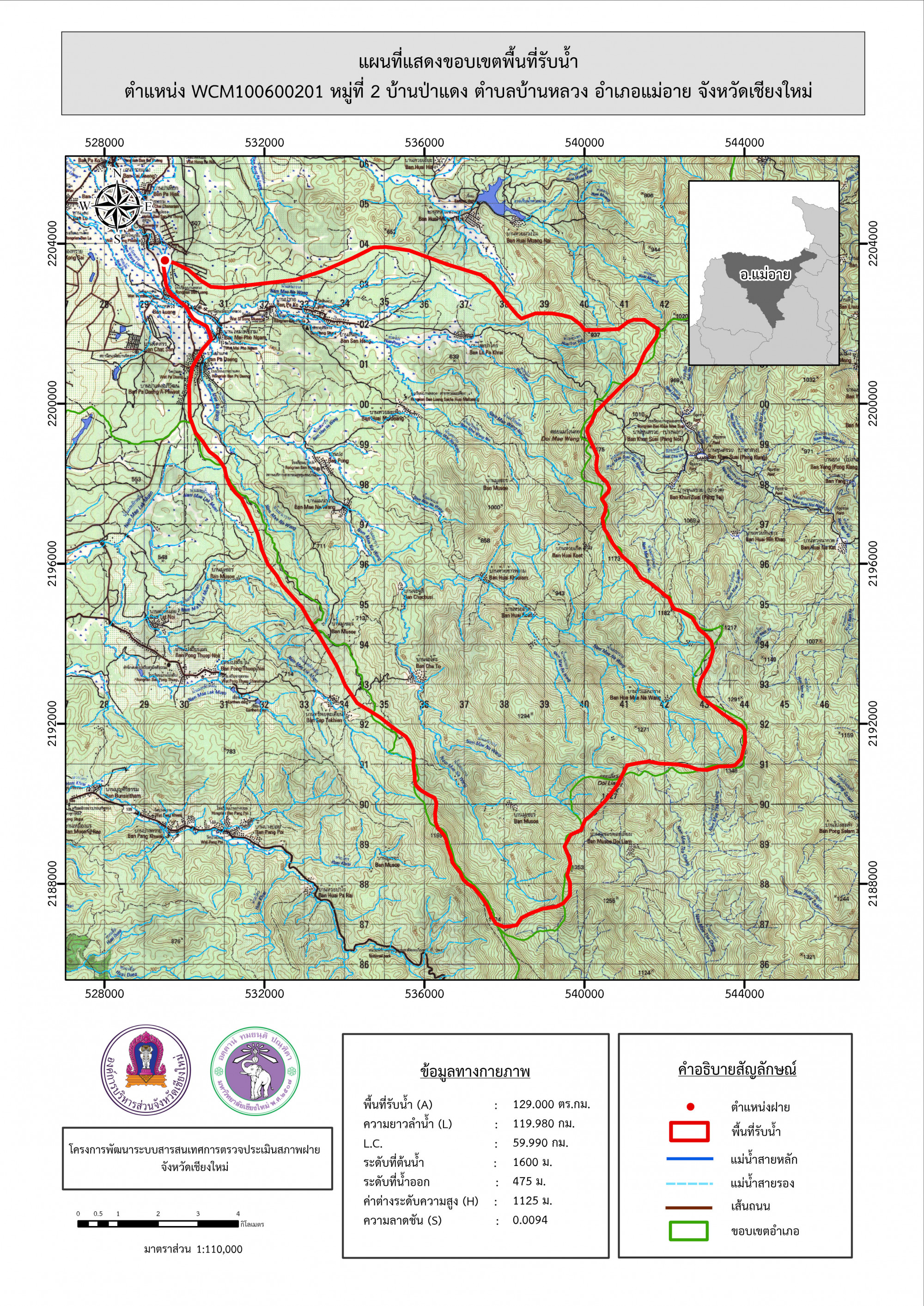 รูปภาพแผนที่แสดงขอบเขตพื้นที่รับน้ำ