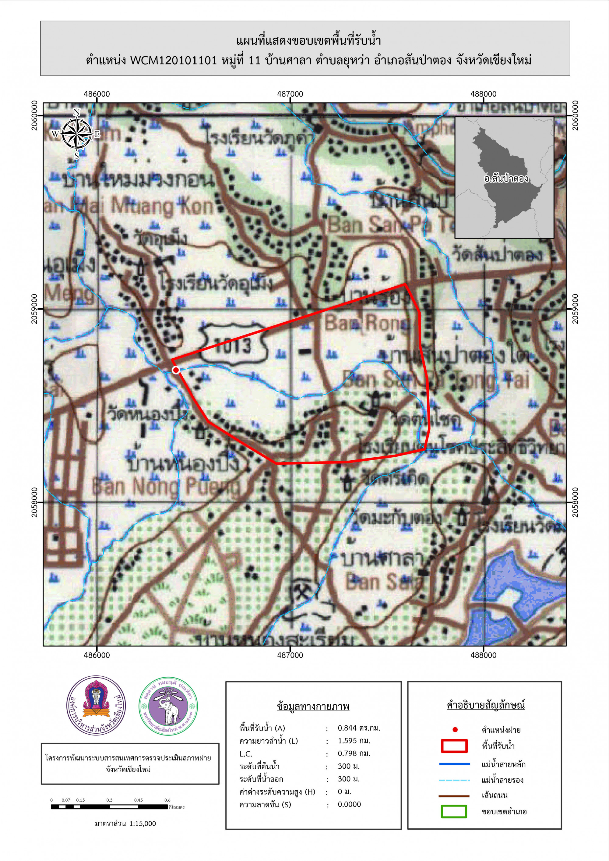 รูปภาพแผนที่แสดงขอบเขตพื้นที่รับน้ำ