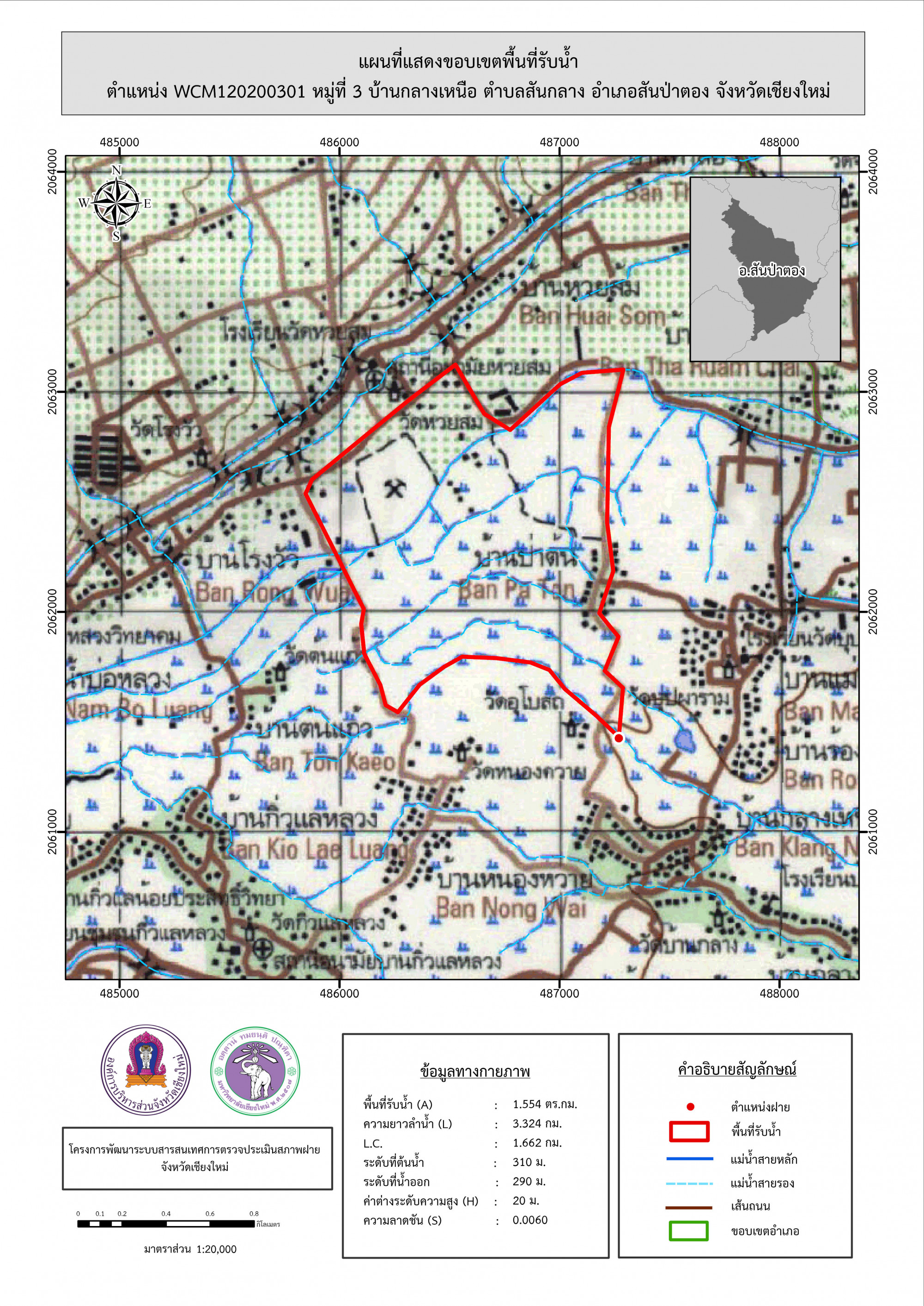 รูปภาพแผนที่แสดงขอบเขตพื้นที่รับน้ำ