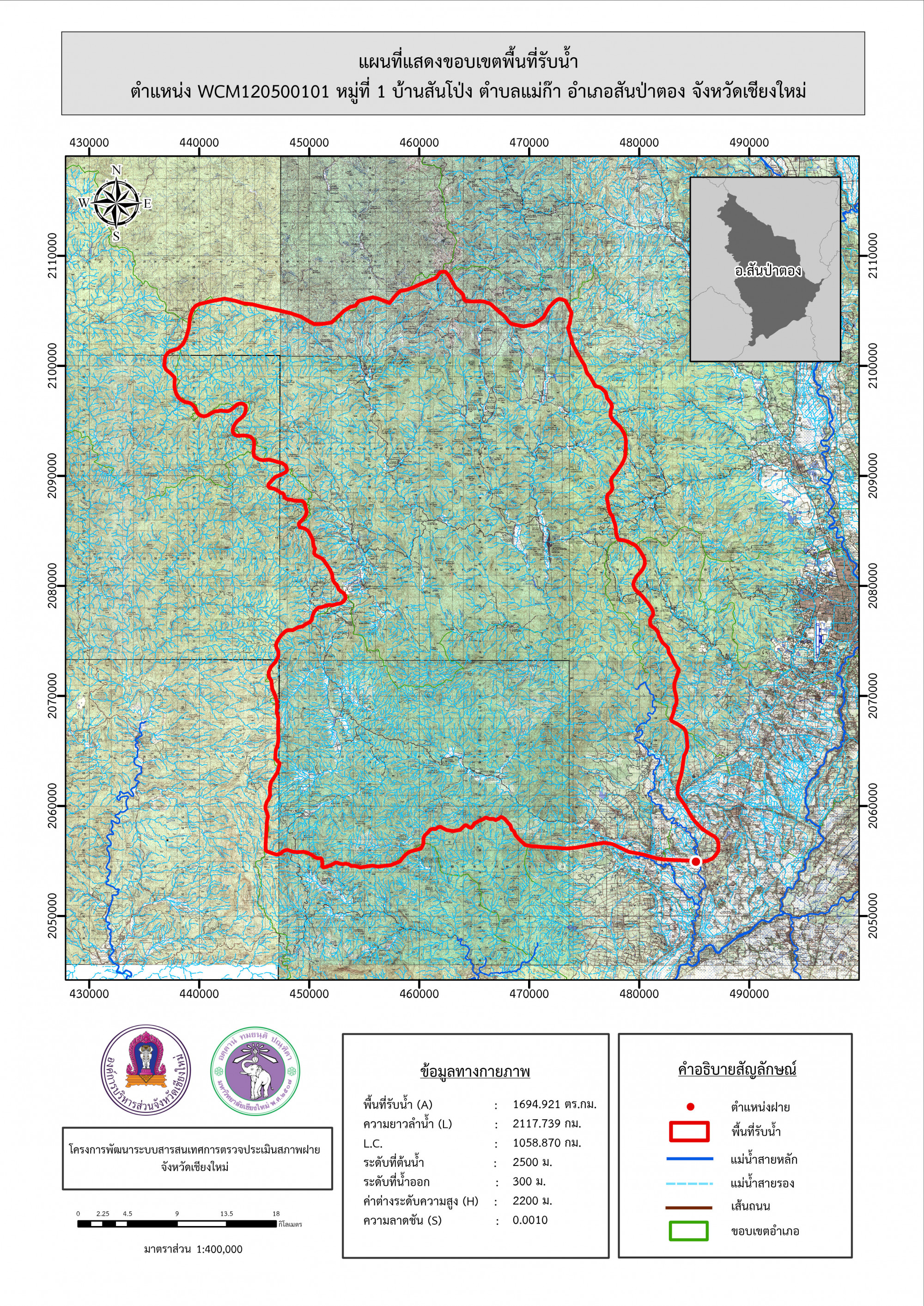 รูปภาพแผนที่แสดงขอบเขตพื้นที่รับน้ำ