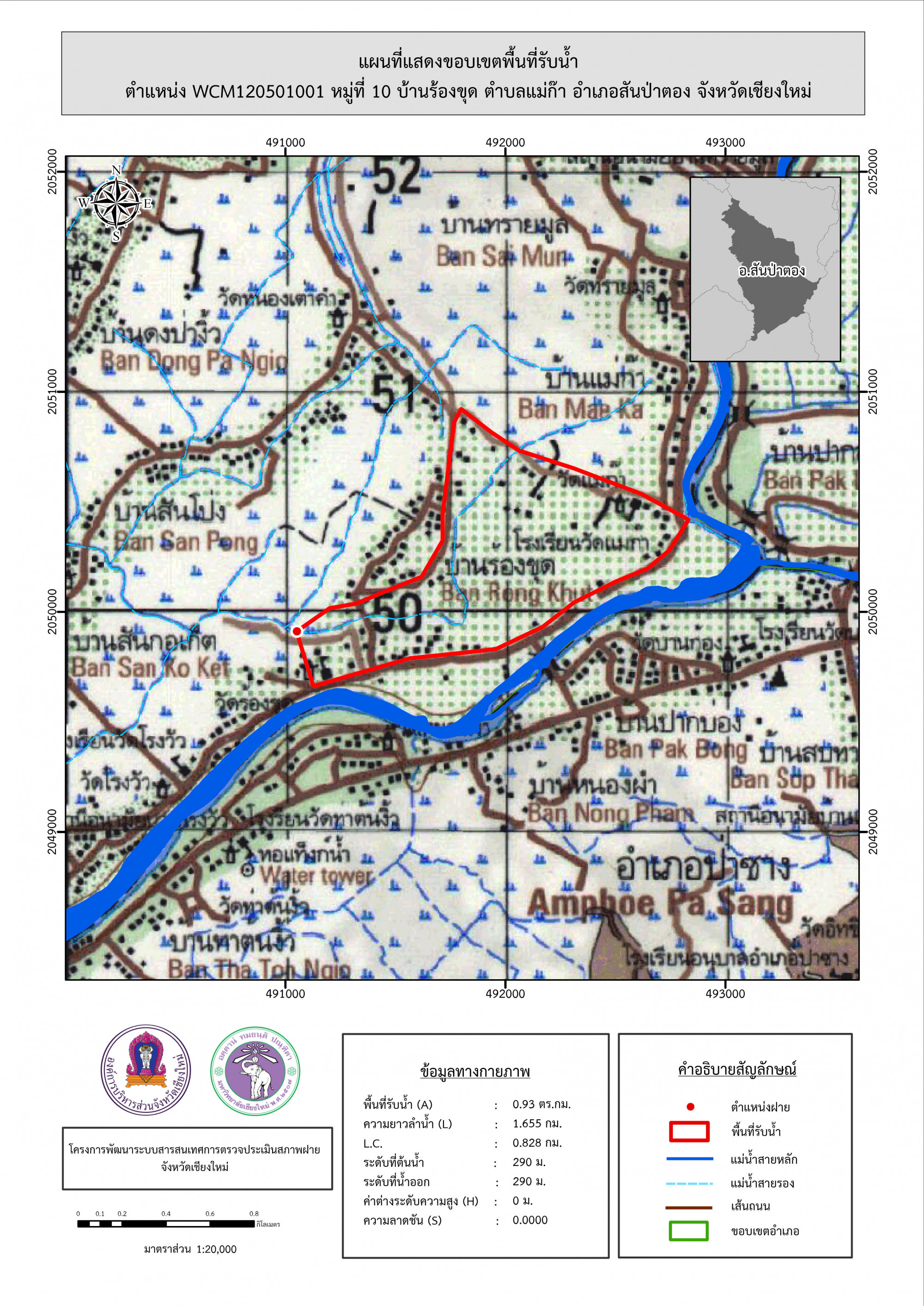 รูปภาพแผนที่แสดงขอบเขตพื้นที่รับน้ำ