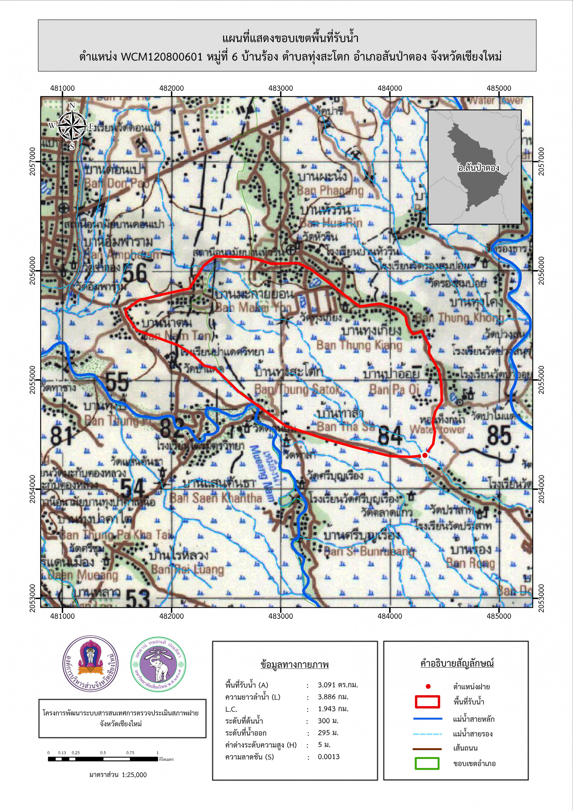 รูปภาพแผนที่แสดงขอบเขตพื้นที่รับน้ำ