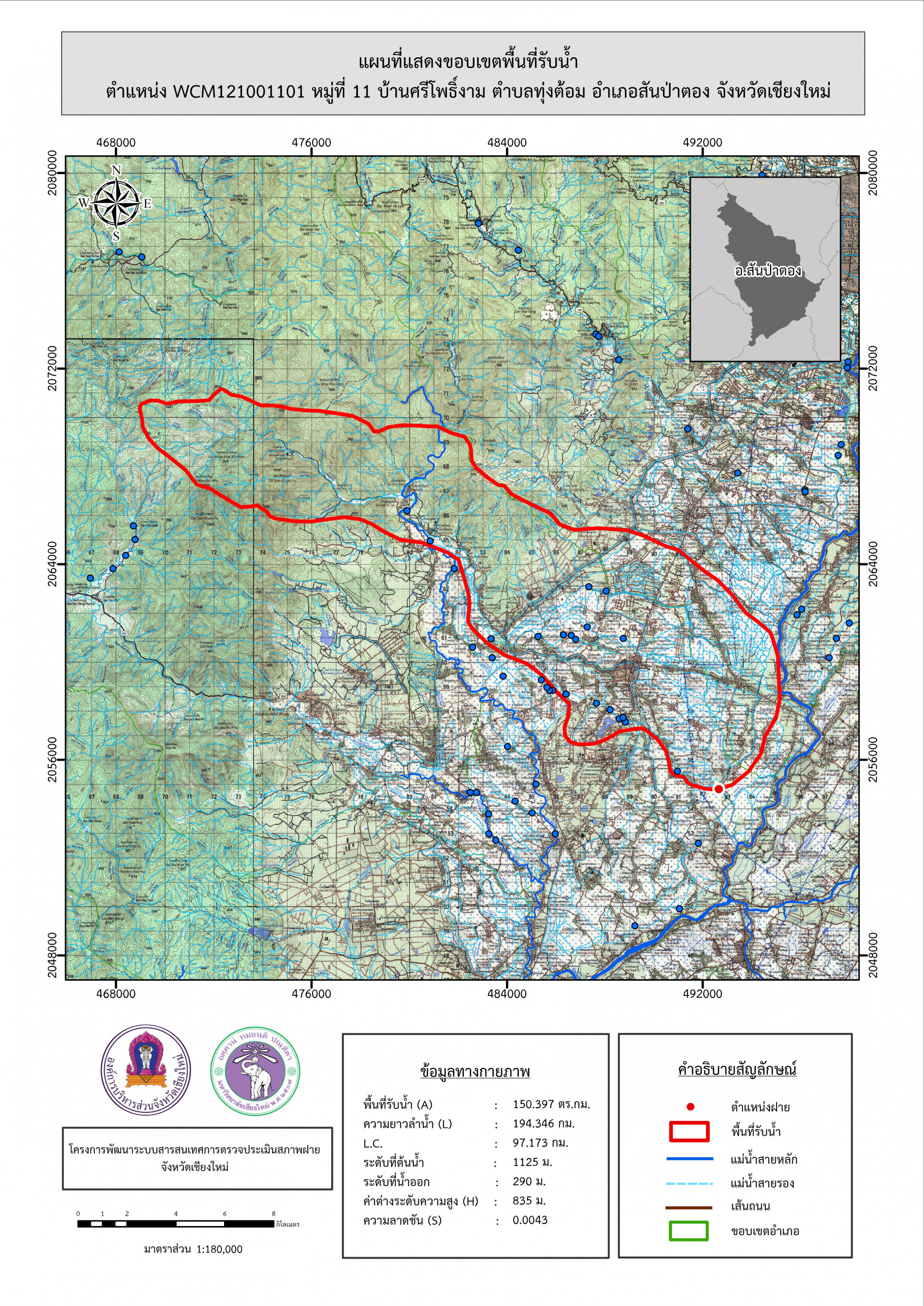 รูปภาพแผนที่แสดงขอบเขตพื้นที่รับน้ำ