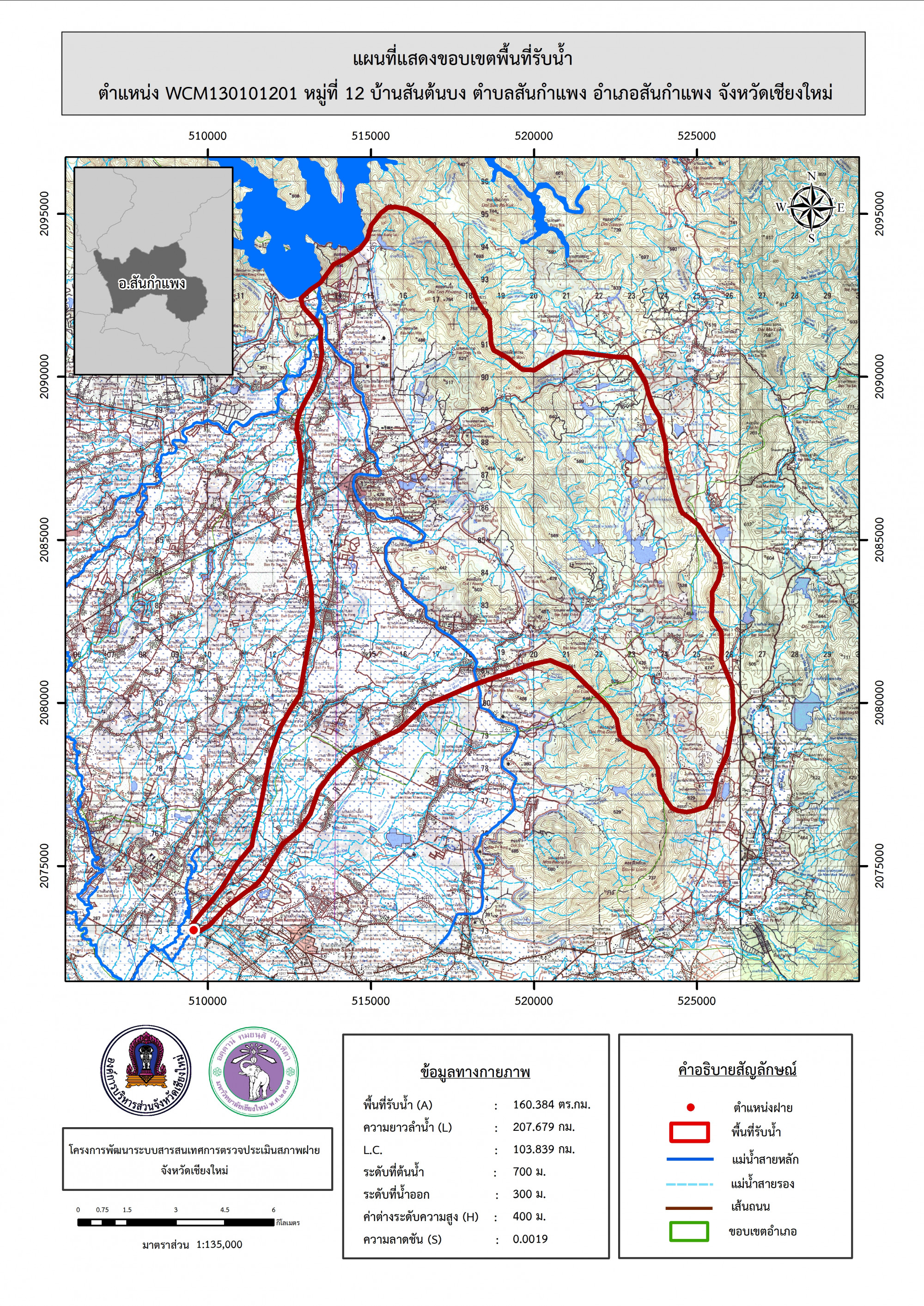 รูปภาพแผนที่แสดงขอบเขตพื้นที่รับน้ำ