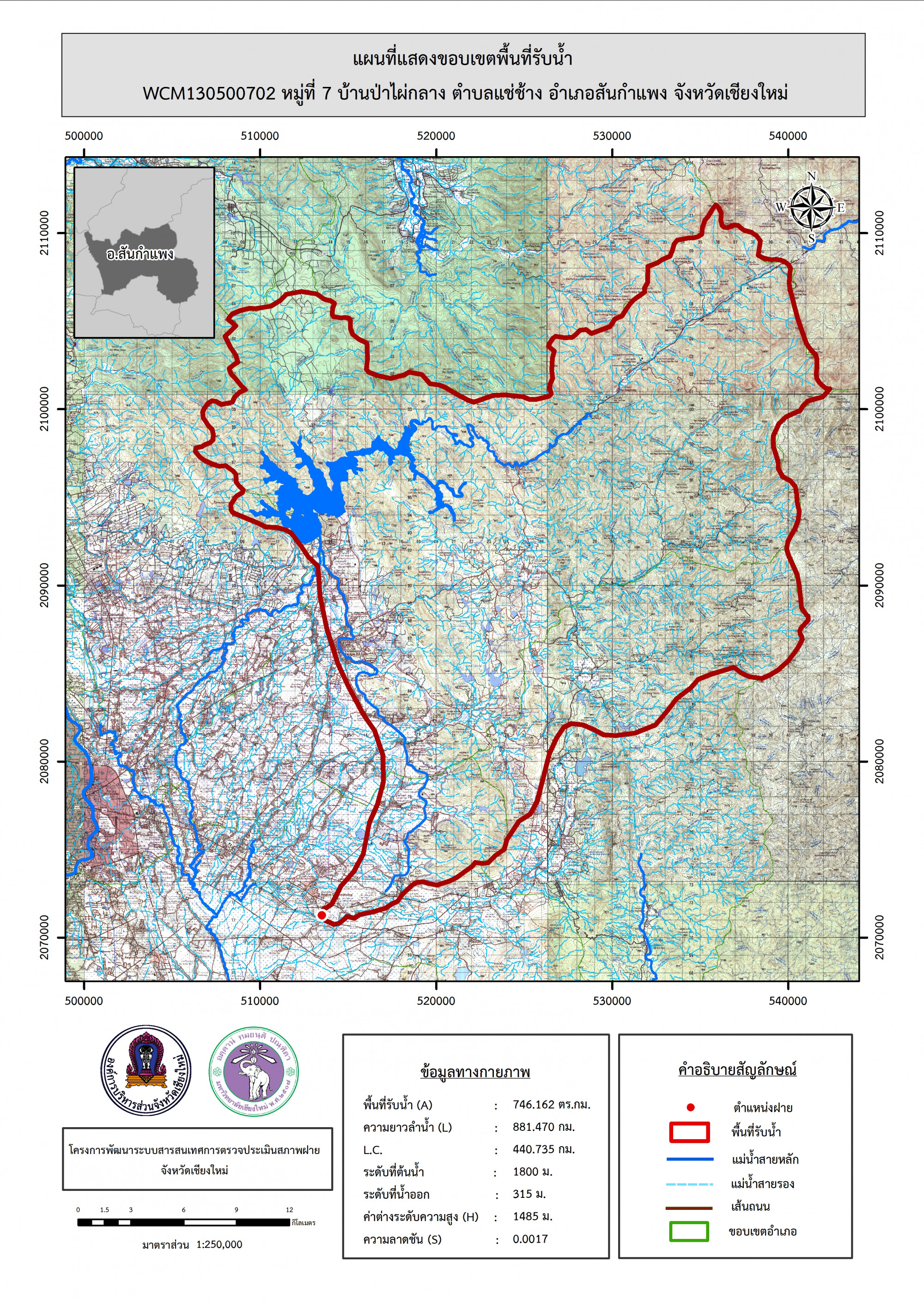 รูปภาพแผนที่แสดงขอบเขตพื้นที่รับน้ำ