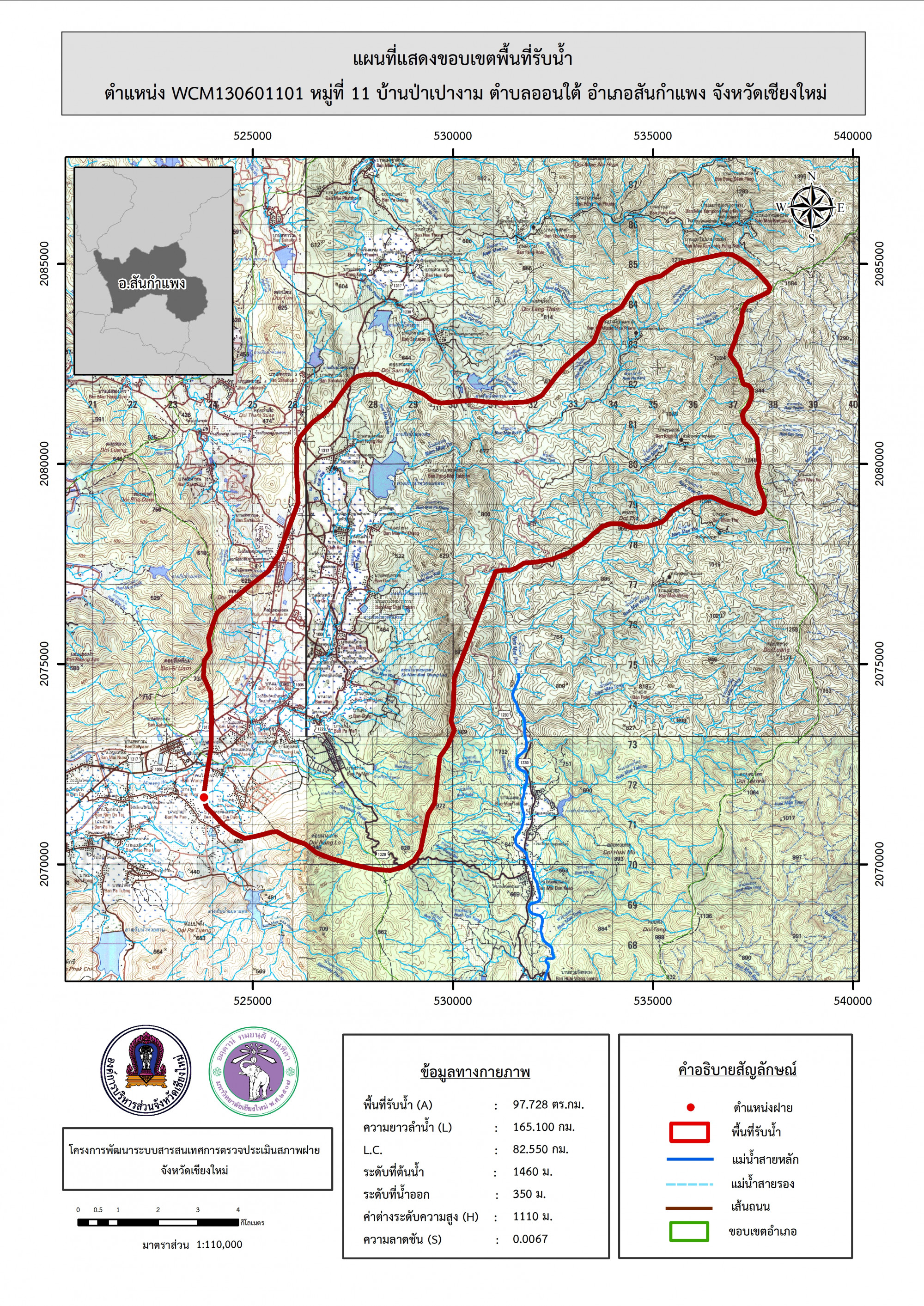 รูปภาพแผนที่แสดงขอบเขตพื้นที่รับน้ำ