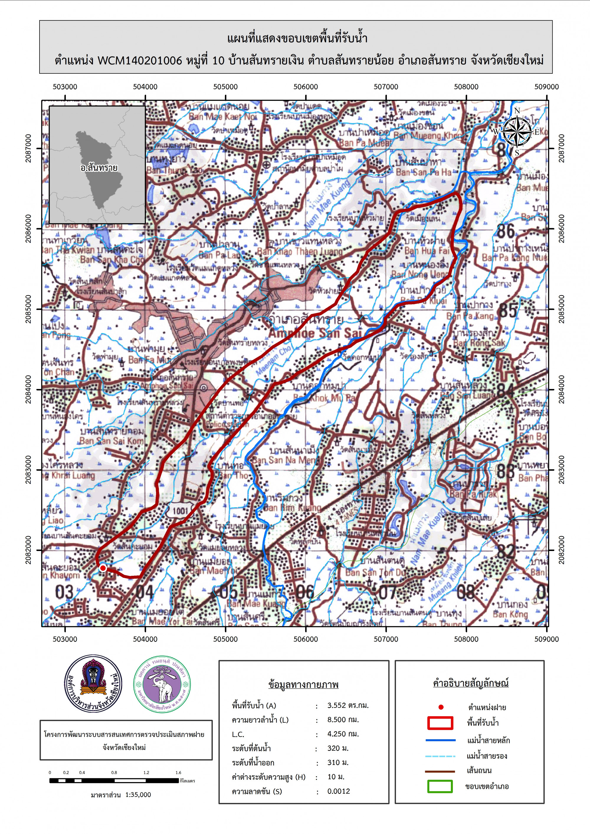 รูปภาพแผนที่แสดงขอบเขตพื้นที่รับน้ำ
