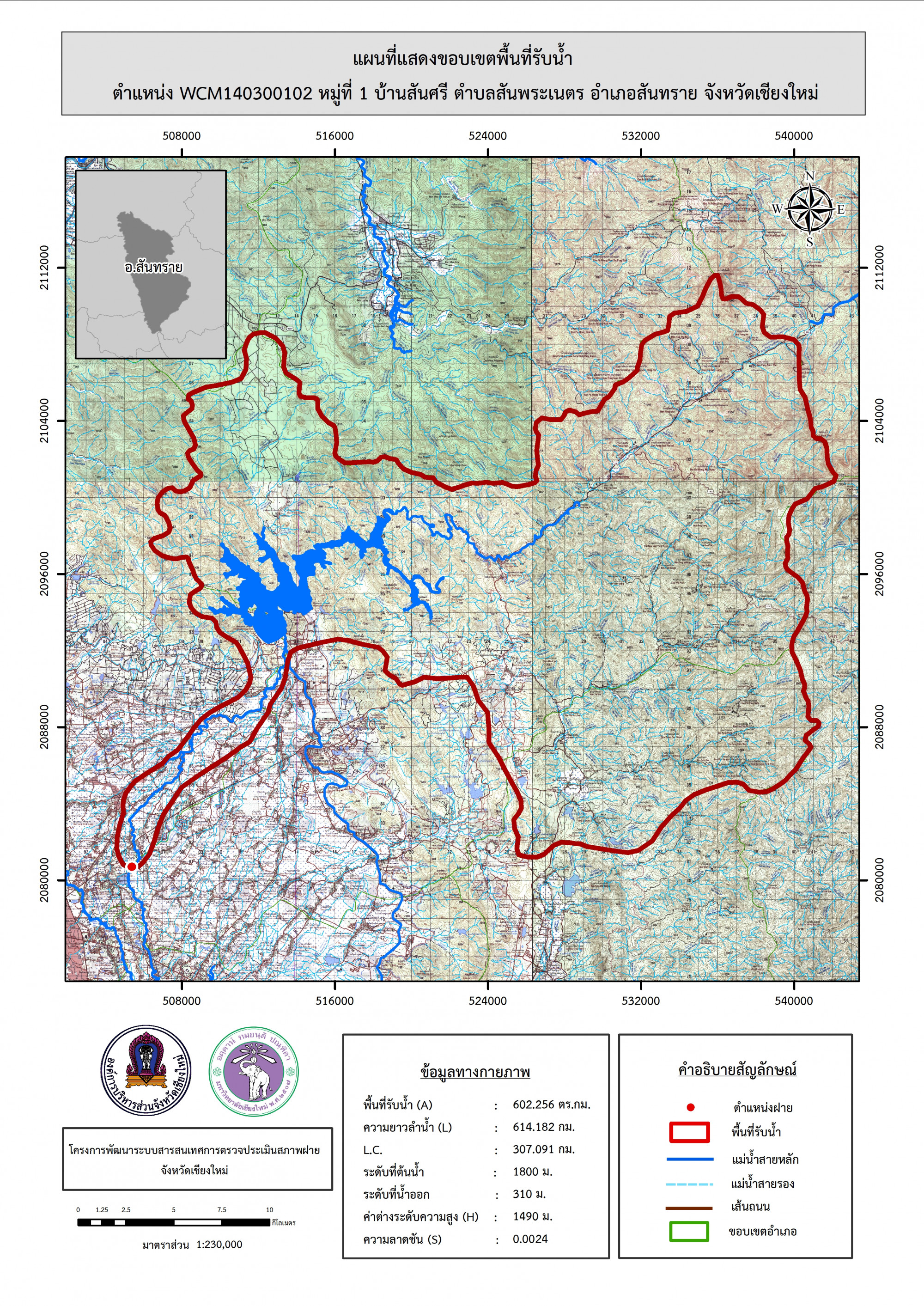 รูปภาพแผนที่แสดงขอบเขตพื้นที่รับน้ำ