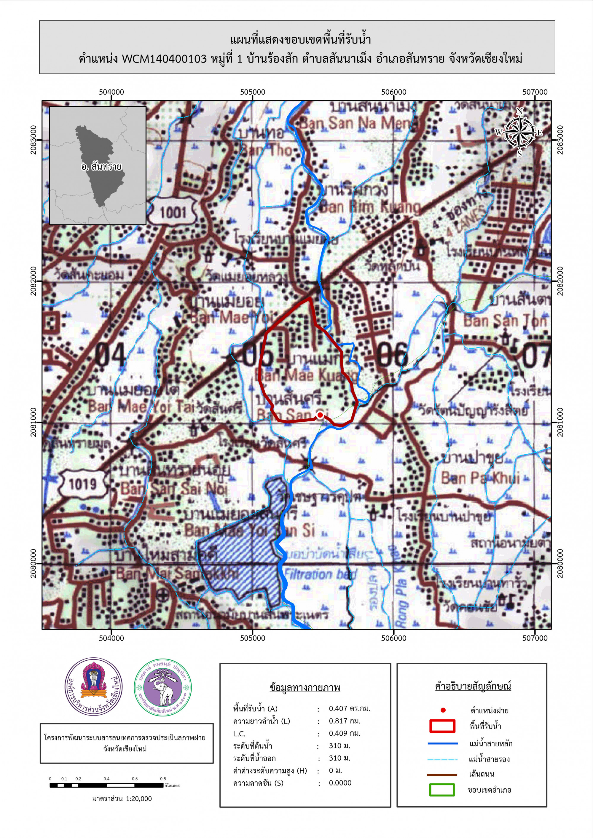 รูปภาพแผนที่แสดงขอบเขตพื้นที่รับน้ำ