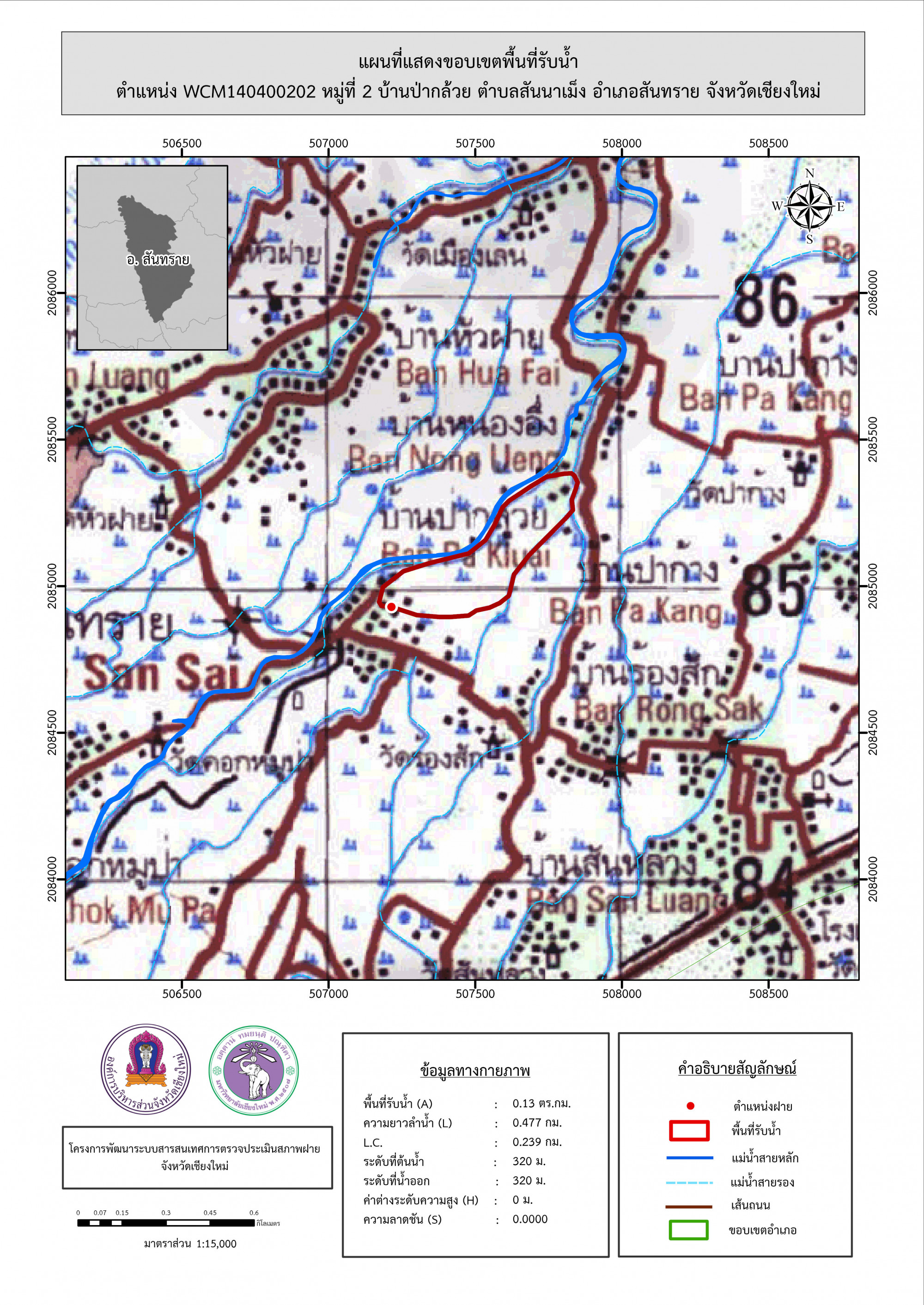 รูปภาพแผนที่แสดงขอบเขตพื้นที่รับน้ำ