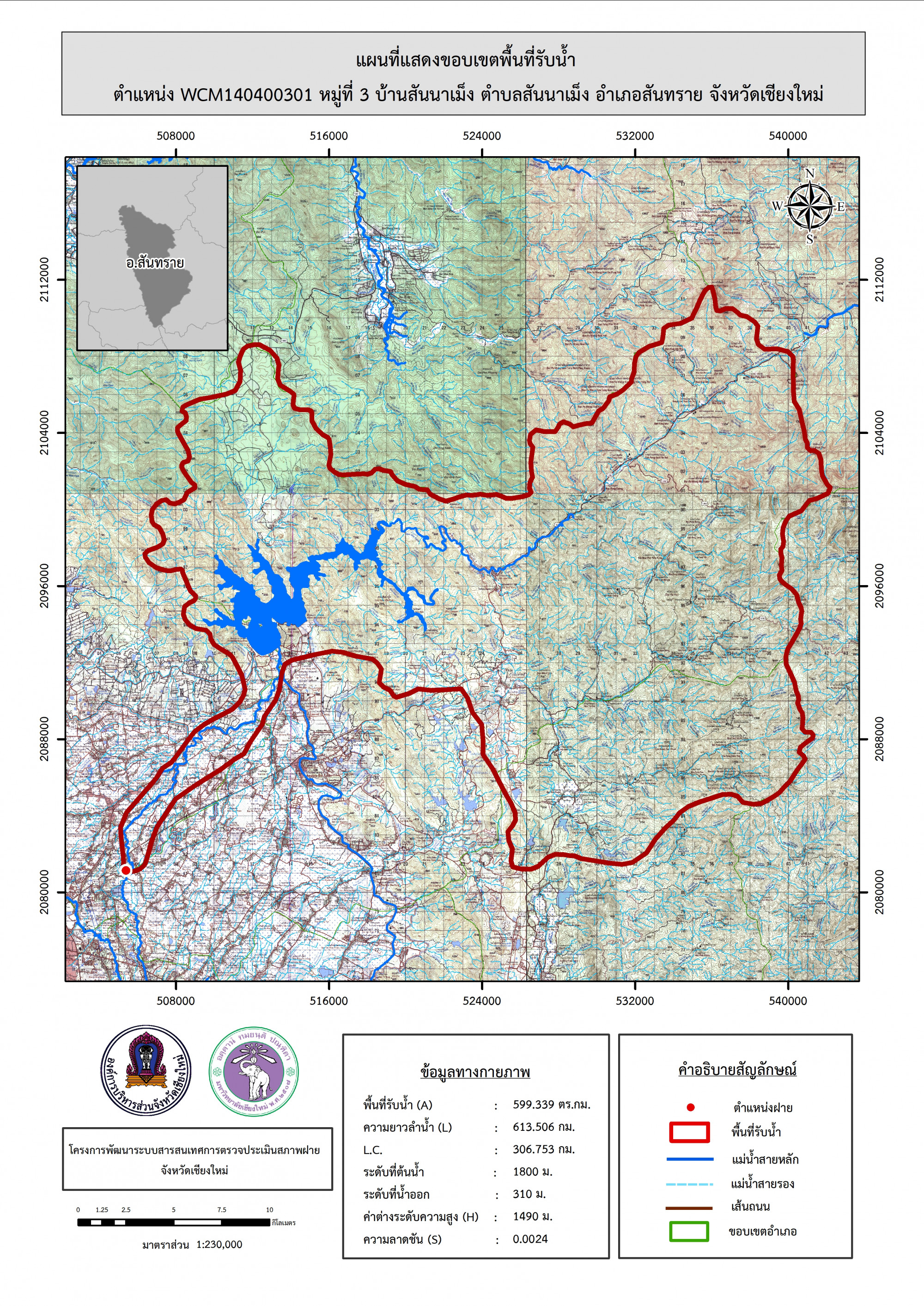 รูปภาพแผนที่แสดงขอบเขตพื้นที่รับน้ำ