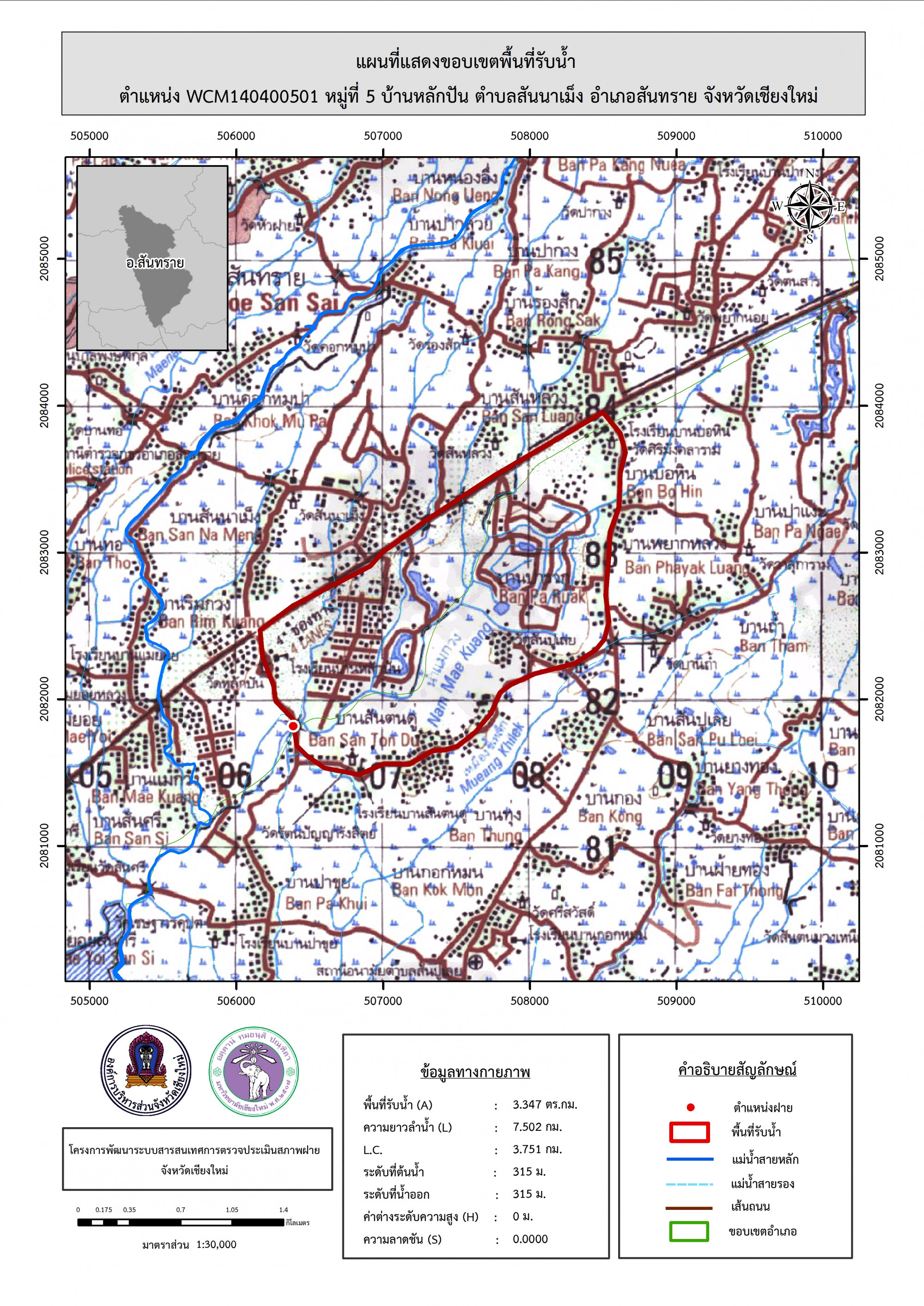 รูปภาพแผนที่แสดงขอบเขตพื้นที่รับน้ำ