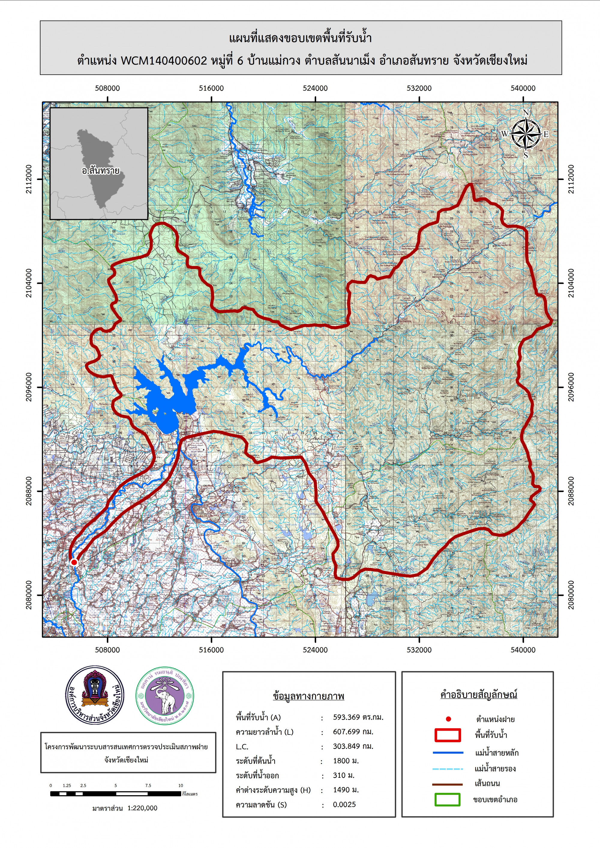 รูปภาพแผนที่แสดงขอบเขตพื้นที่รับน้ำ