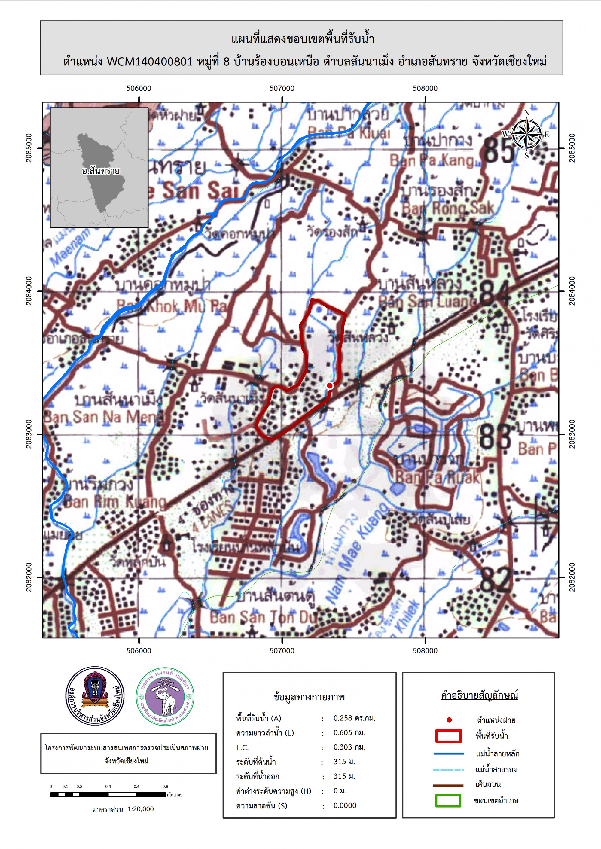 รูปภาพแผนที่แสดงขอบเขตพื้นที่รับน้ำ