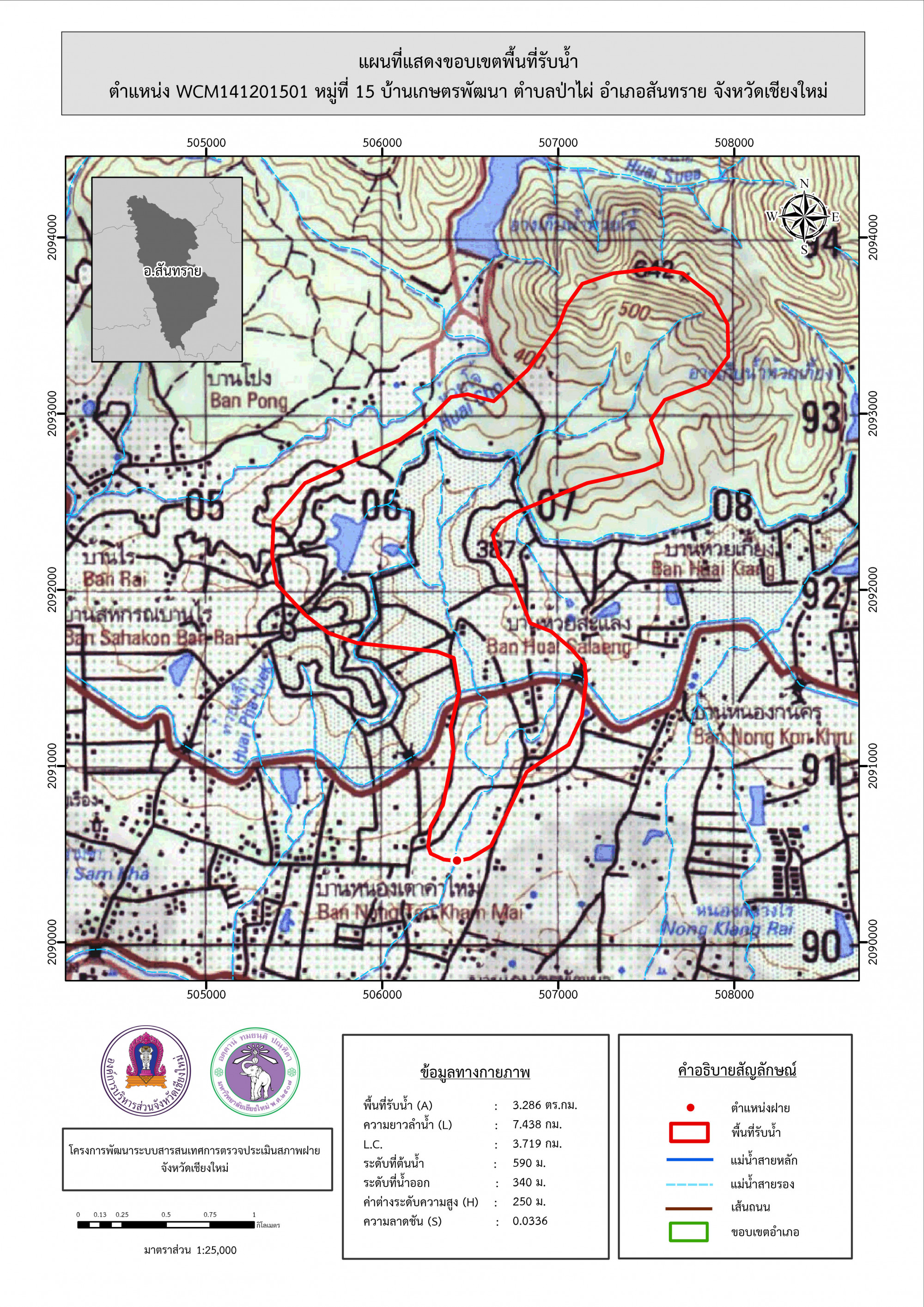 รูปภาพแผนที่แสดงขอบเขตพื้นที่รับน้ำ