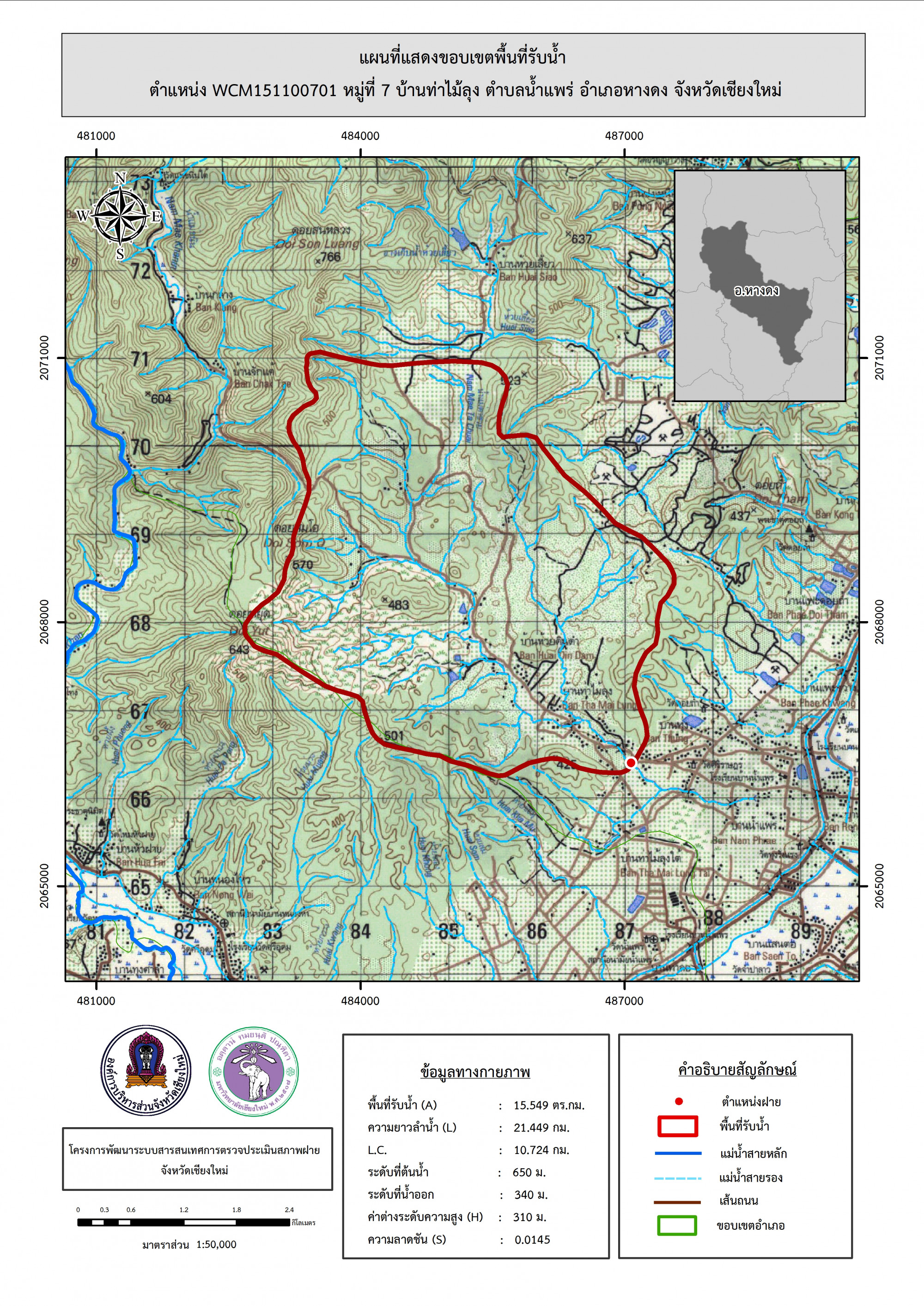 รูปภาพแผนที่แสดงขอบเขตพื้นที่รับน้ำ