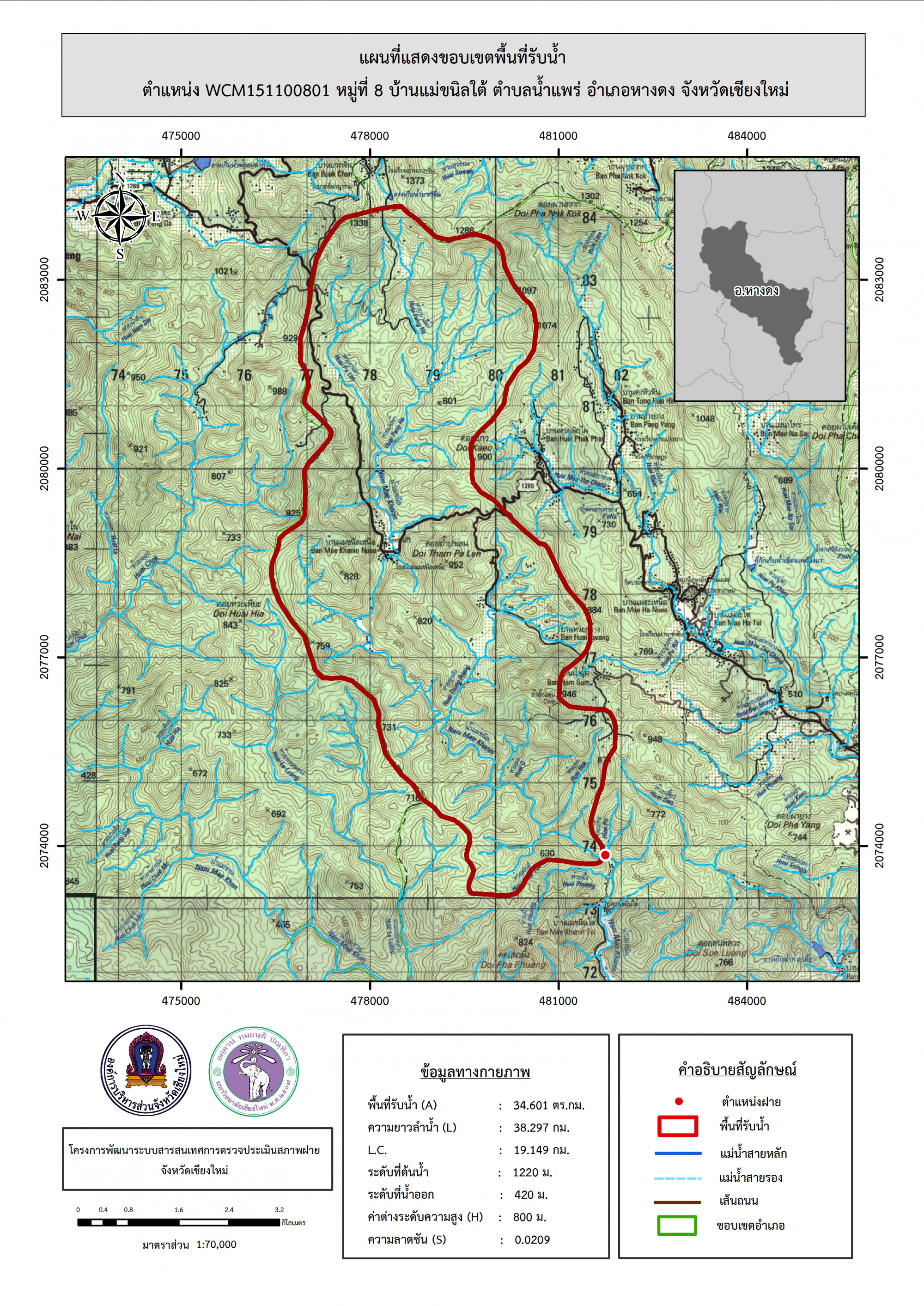รูปภาพแผนที่แสดงขอบเขตพื้นที่รับน้ำ