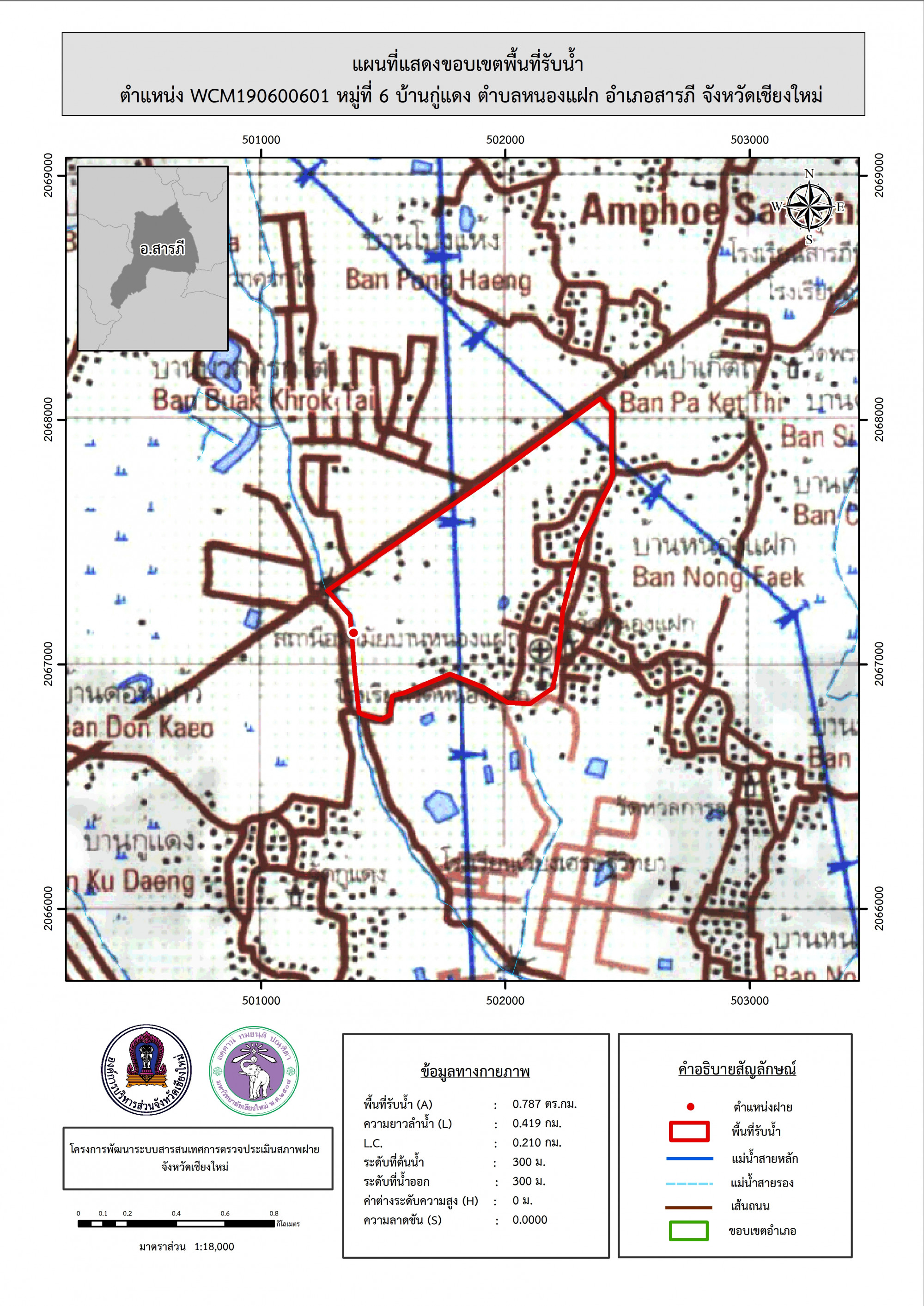 รูปภาพแผนที่แสดงขอบเขตพื้นที่รับน้ำ