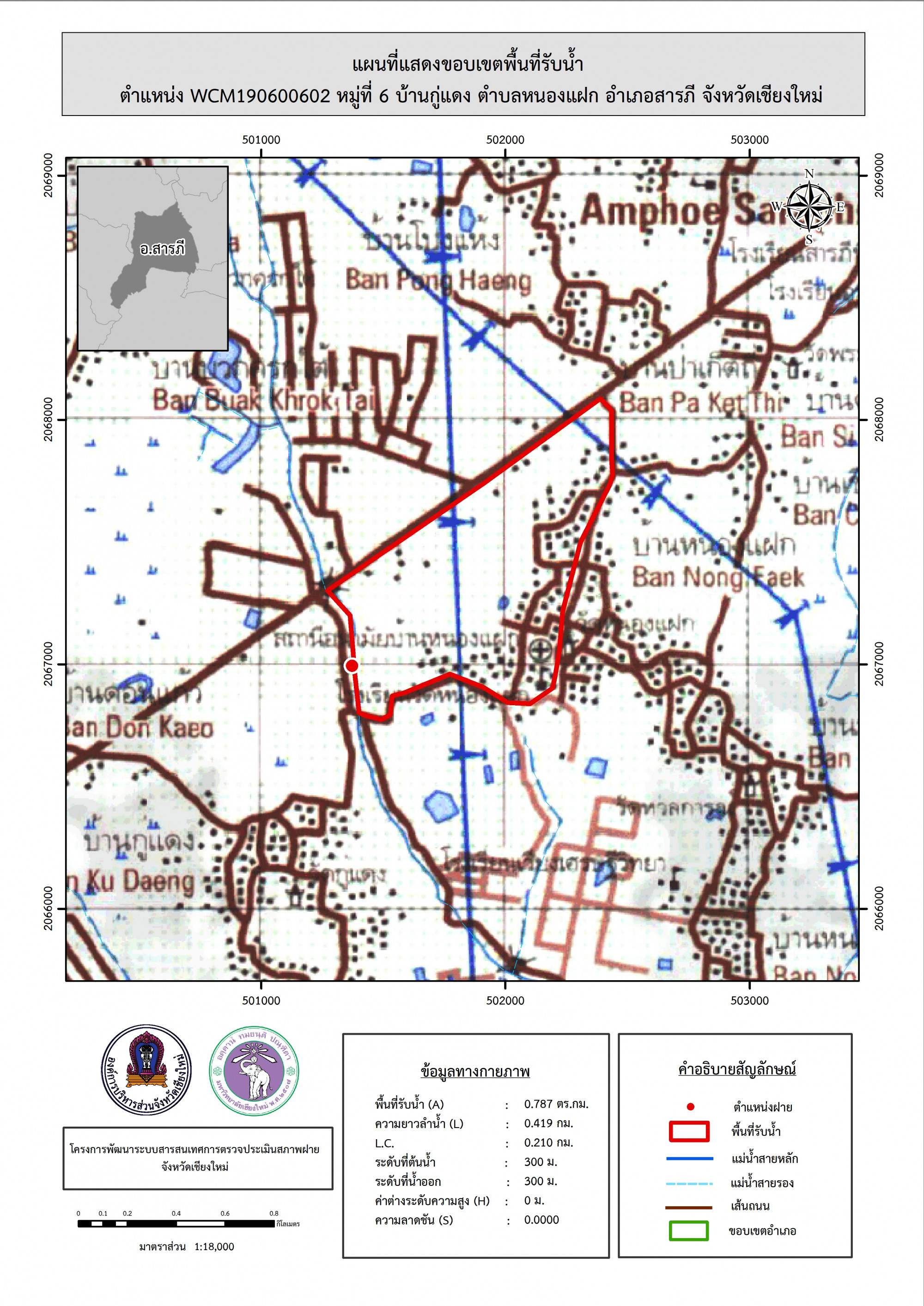 รูปภาพแผนที่แสดงขอบเขตพื้นที่รับน้ำ